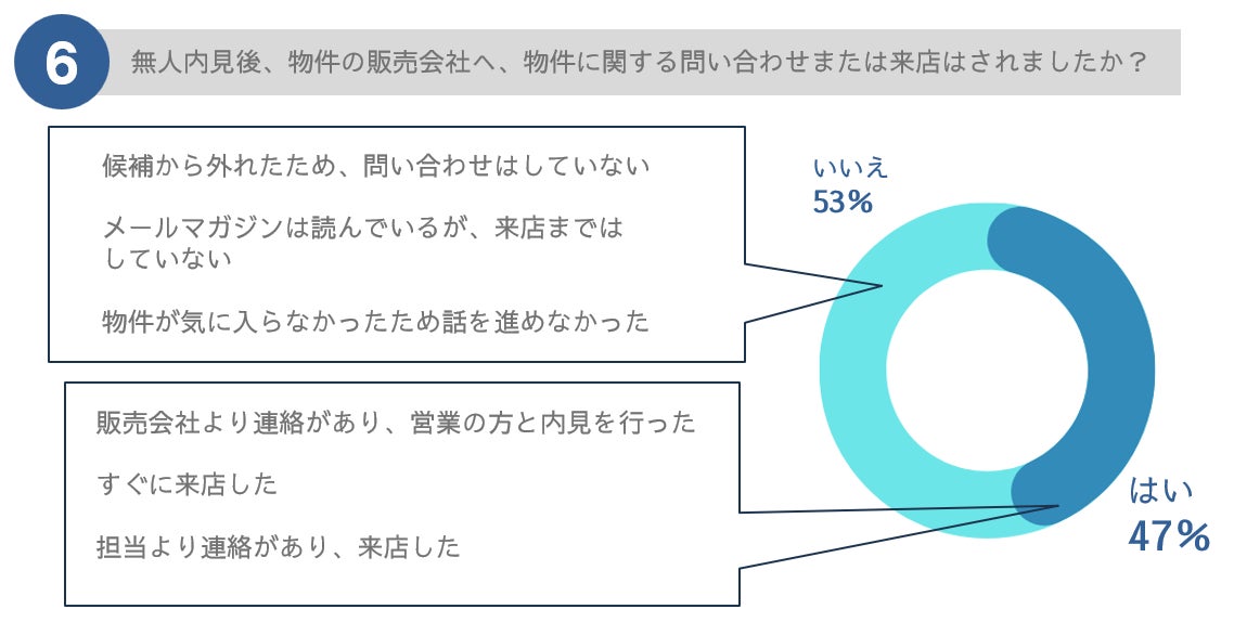 「無人内見」利用客の47%が、内見後に販売会社への問い合わせや来店を行っている
