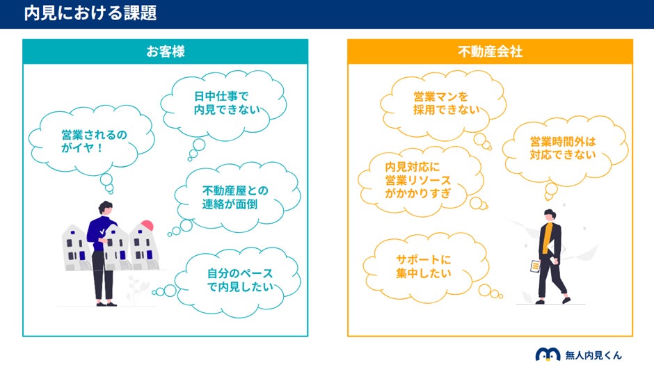 「無人内見くん」は、ビルダーやハウスメーカー向けに提供する、内見受付~現地内見の完了までを見学者のみで完結できるサービスです。内見対応者の人手不足解消や、営業時間外での内見による顧客満足度向上に繋がるサービスとして、導入企業は150社、内見者数は1万人を超えています。