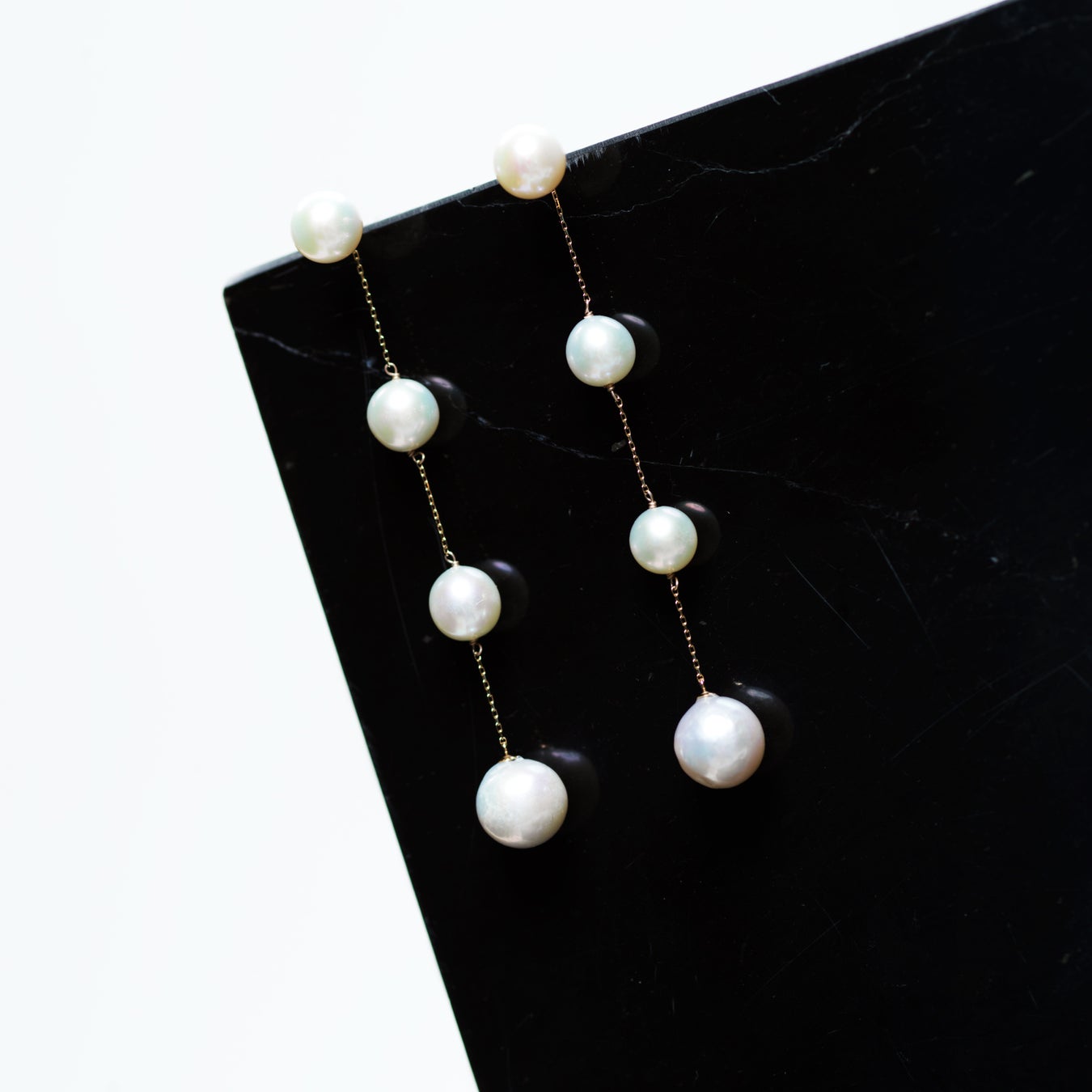パールの光沢や清らかなホワイトカラーが、表情を明るく上向きにしてくれるリズミカルなデザインのパールピアス。