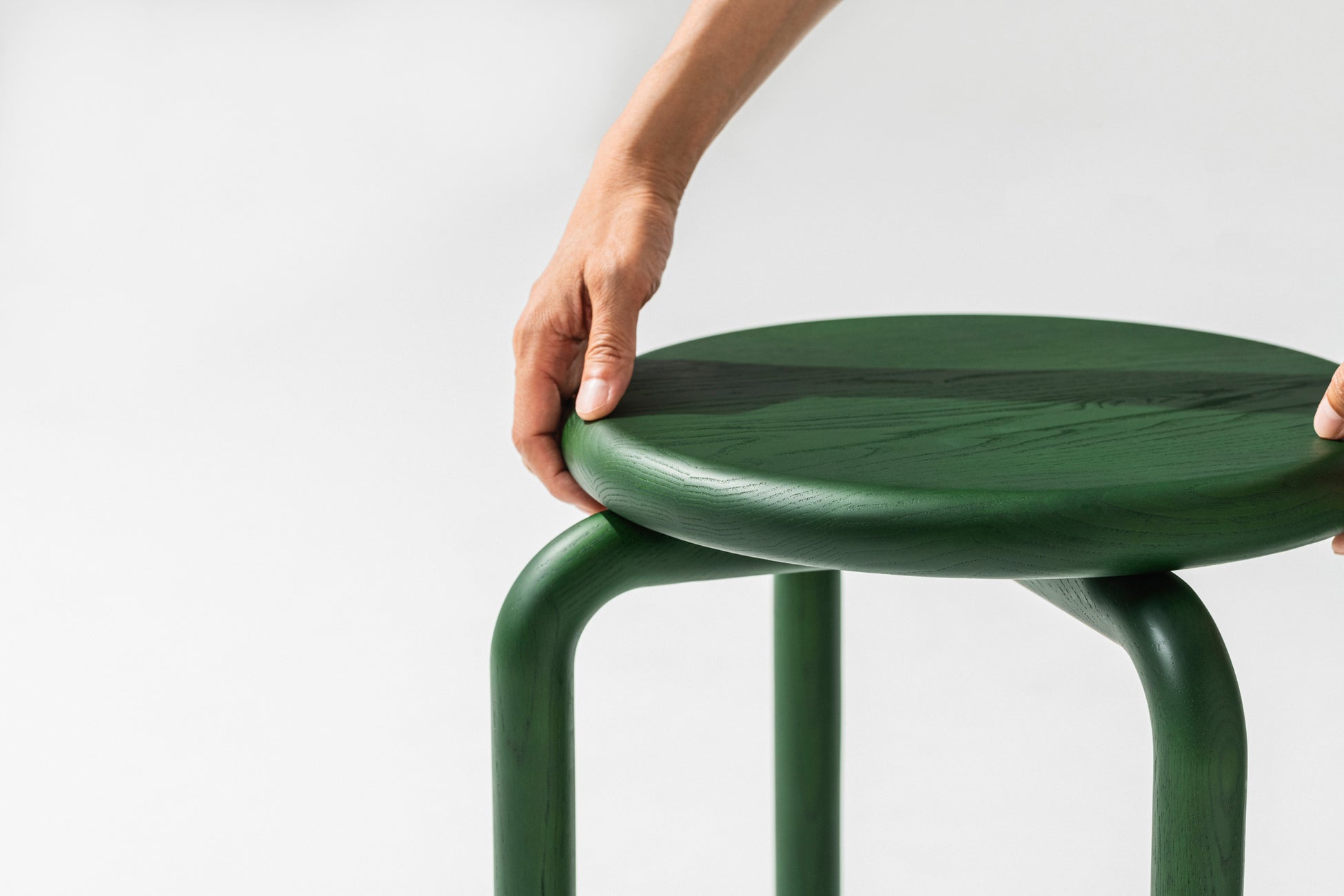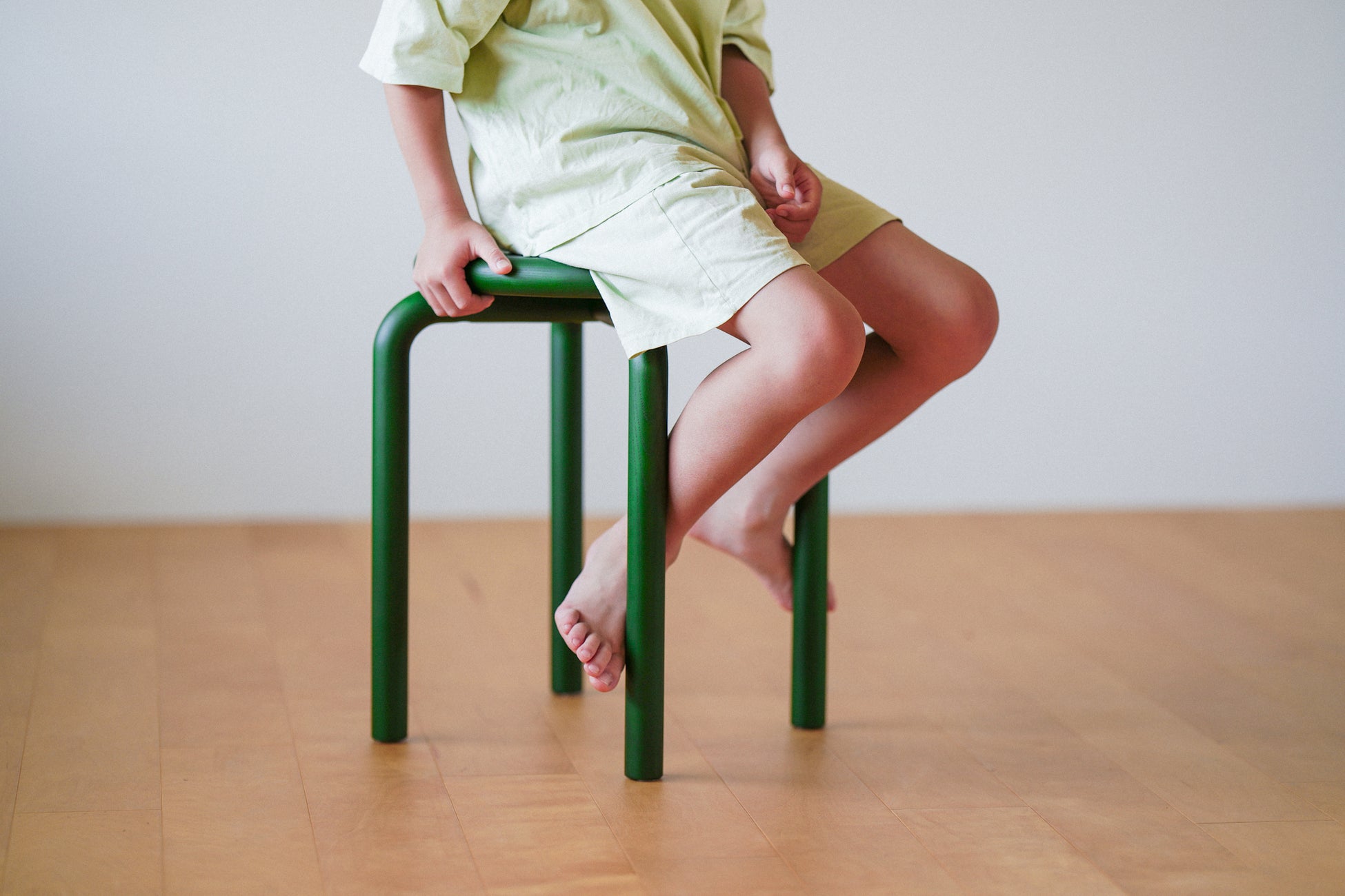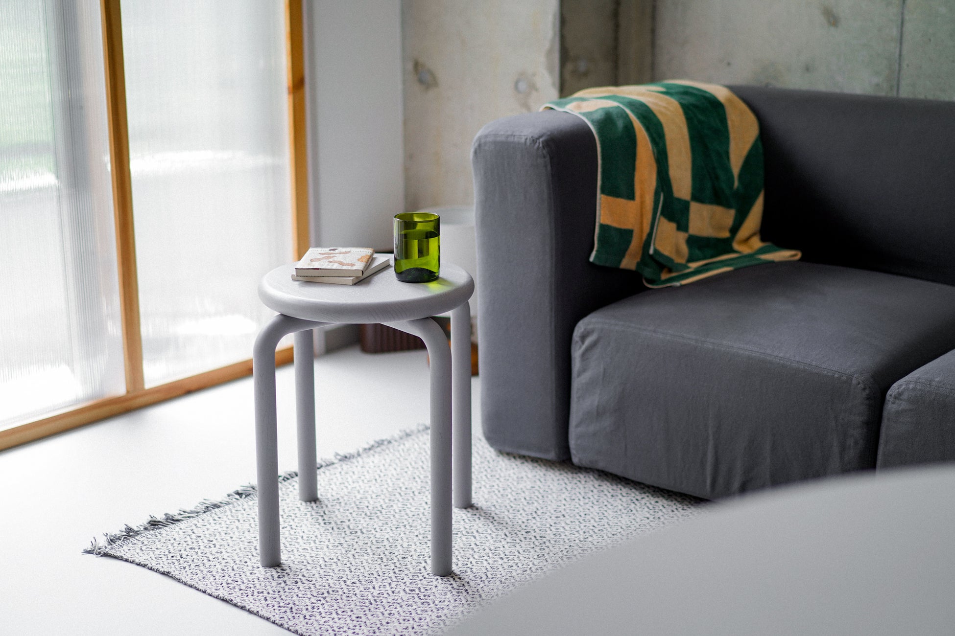 座面も脚も、角をすべて丸く仕上げた、まろやかな形。裸足や素肌がふれても痛くなく、リラックスして座ることができます。家でも、公共の場でも、安心して使えるスツールです。
