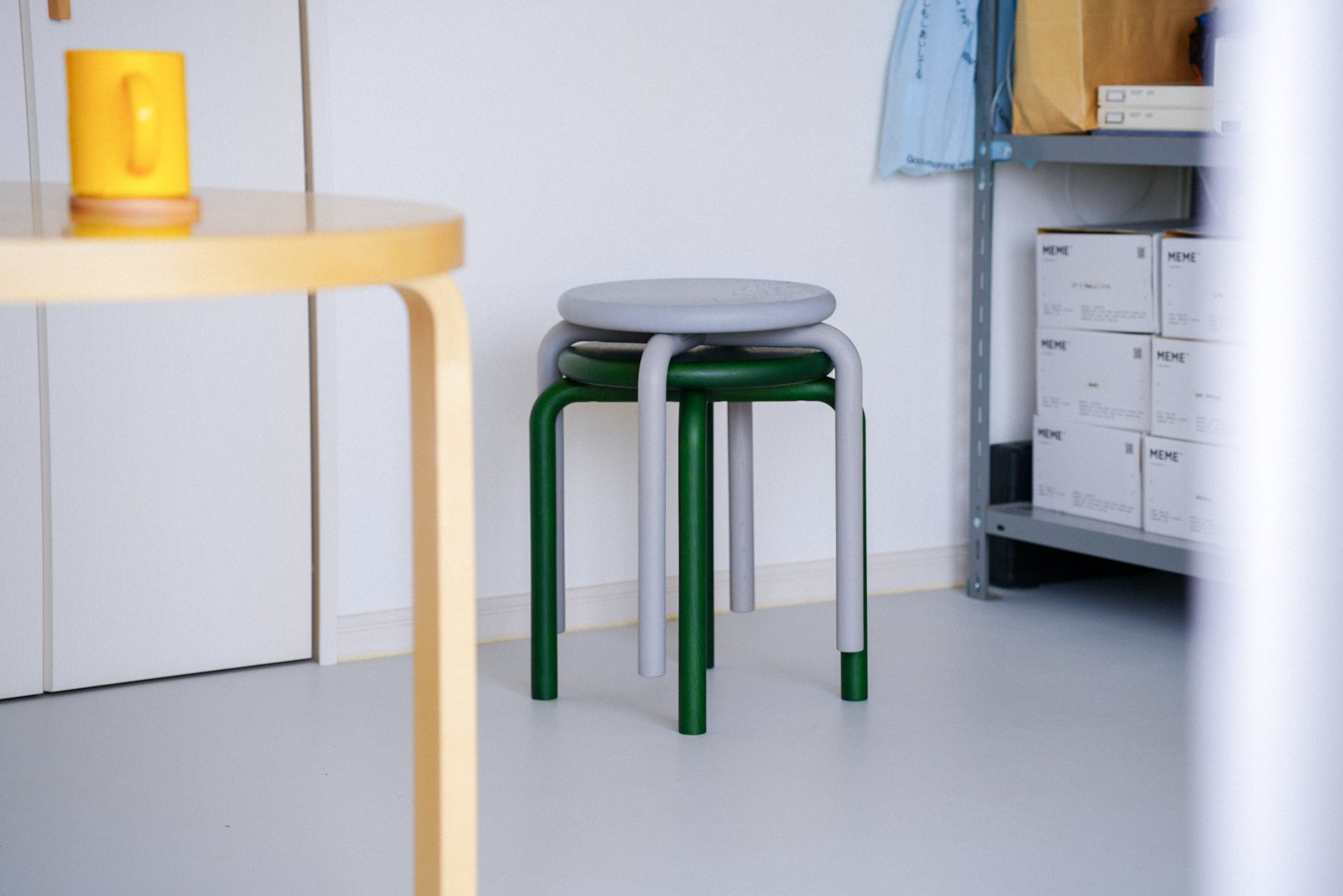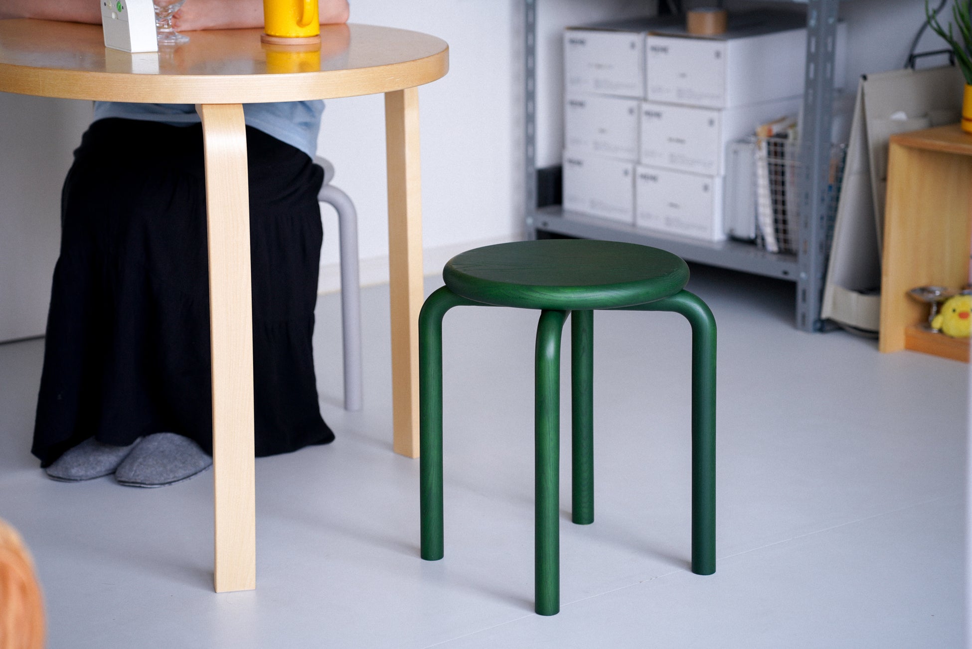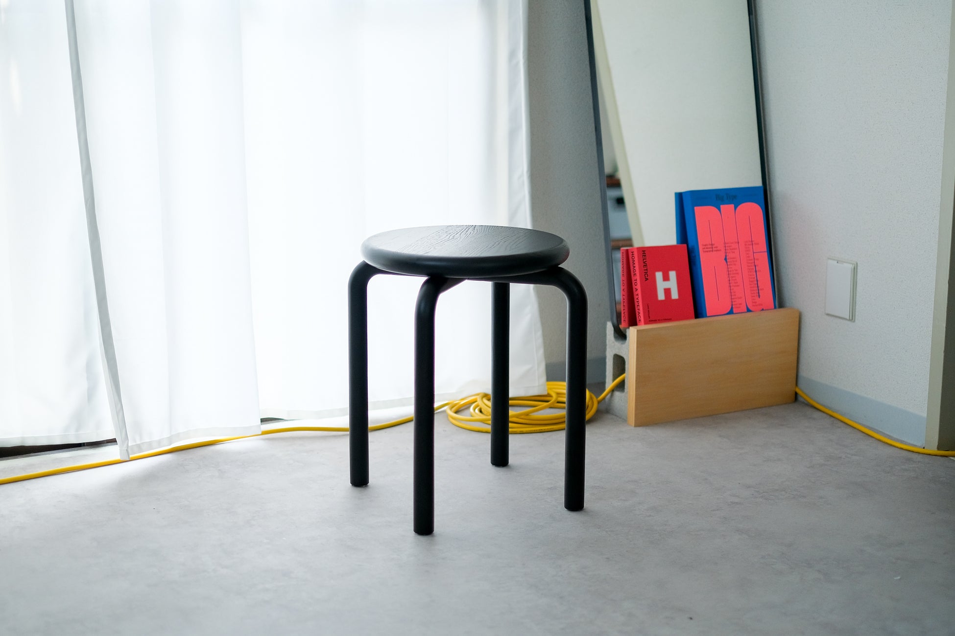 しかし、多くのスツールは座面も脚も角がカクカクしていて、腿の裏や足に触れるたびに少し痛く、どこか落ち着かない。