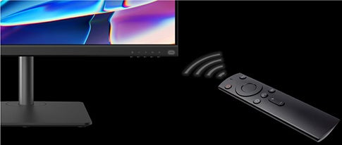 ストリーミングデバイスに付属のリモコンを使ったディスプレイの電源/音量調整が可能です。