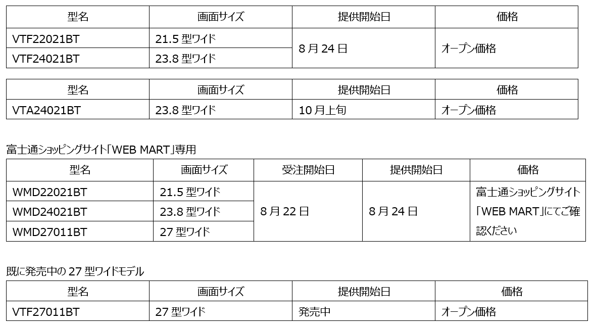 ・富士通ショッピングサイト「WEB MART」:https://fmv.fccl.fujitsu.com/shop/pid/pickup-peripheral/pickup-display