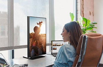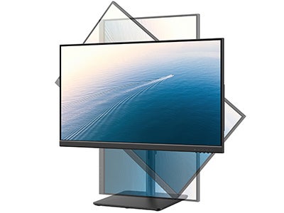 画面を縦横90°ずつ回転させることができます。例えば画面を縦長で使用すると、スクロールの回数も少なく、Webサイトや写真の閲覧、資料作成などが快適に行えます。お客様の用途に合わせて縦向き・横向きでお使いいただけます。