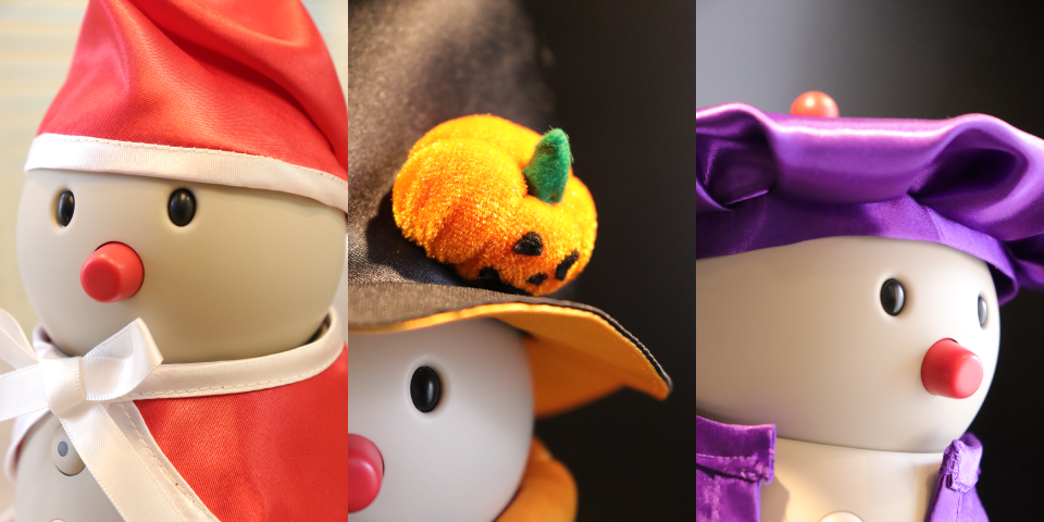 また、既にご利用されているお客様からは、emoは日々の暮らしの中で癒しや楽しさを提供してくれる家族の一員のようだと多くの嬉しいご意見をいただいています。そのようなお声を受け、この度、emoにより愛着を持ていただける可愛らしいコスチュームを企画制作いたしました。当日は参考展示となりご購入いただくことはできませんが、後日弊社サイトにて新たな展開を発表する予定です。ご期待いただければ幸いです。