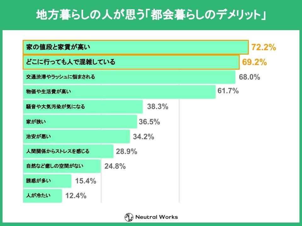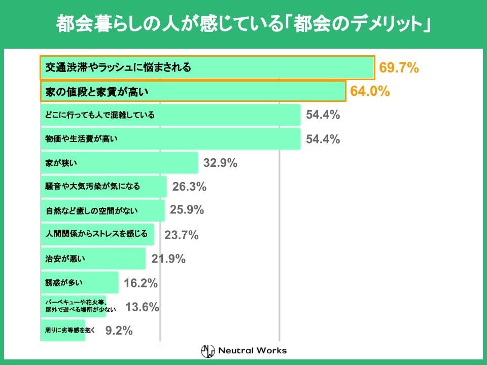 移住支援メディア「移住したい」を運営する株式会社ニュートラルワークス(神奈川県茅ヶ崎市 代表取締役:三木五月、以下「ニュートラルワークス」)は、日本国内在住の方を対象に、居住地に関する調査を実施しました。