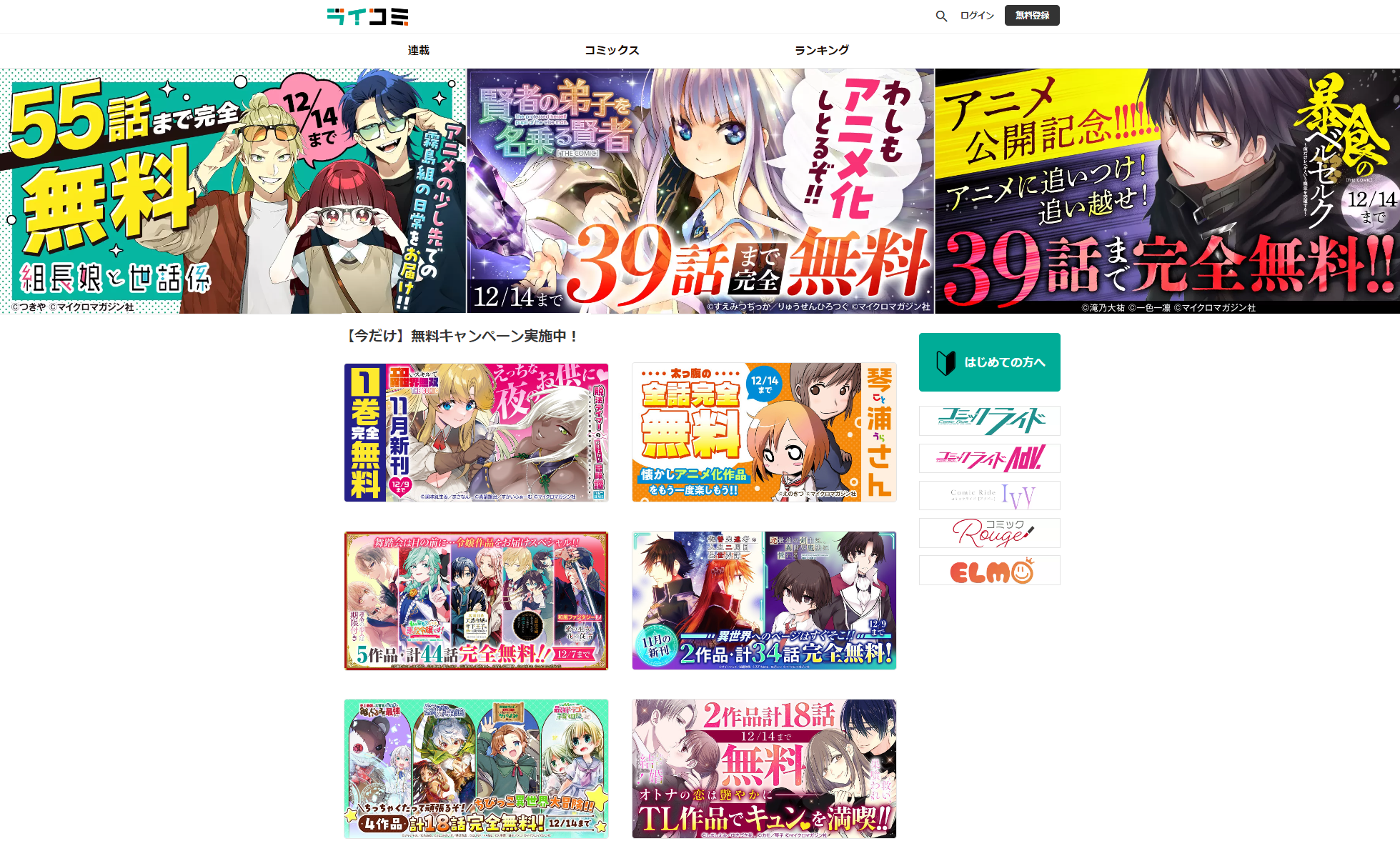 『暴食のベルセルク』『組長娘と世話係』『賢者の弟子を名乗る賢者』の「コミックライド」が、「コミチ+」のシステムを用いて「ライコミ」にリニューアル!