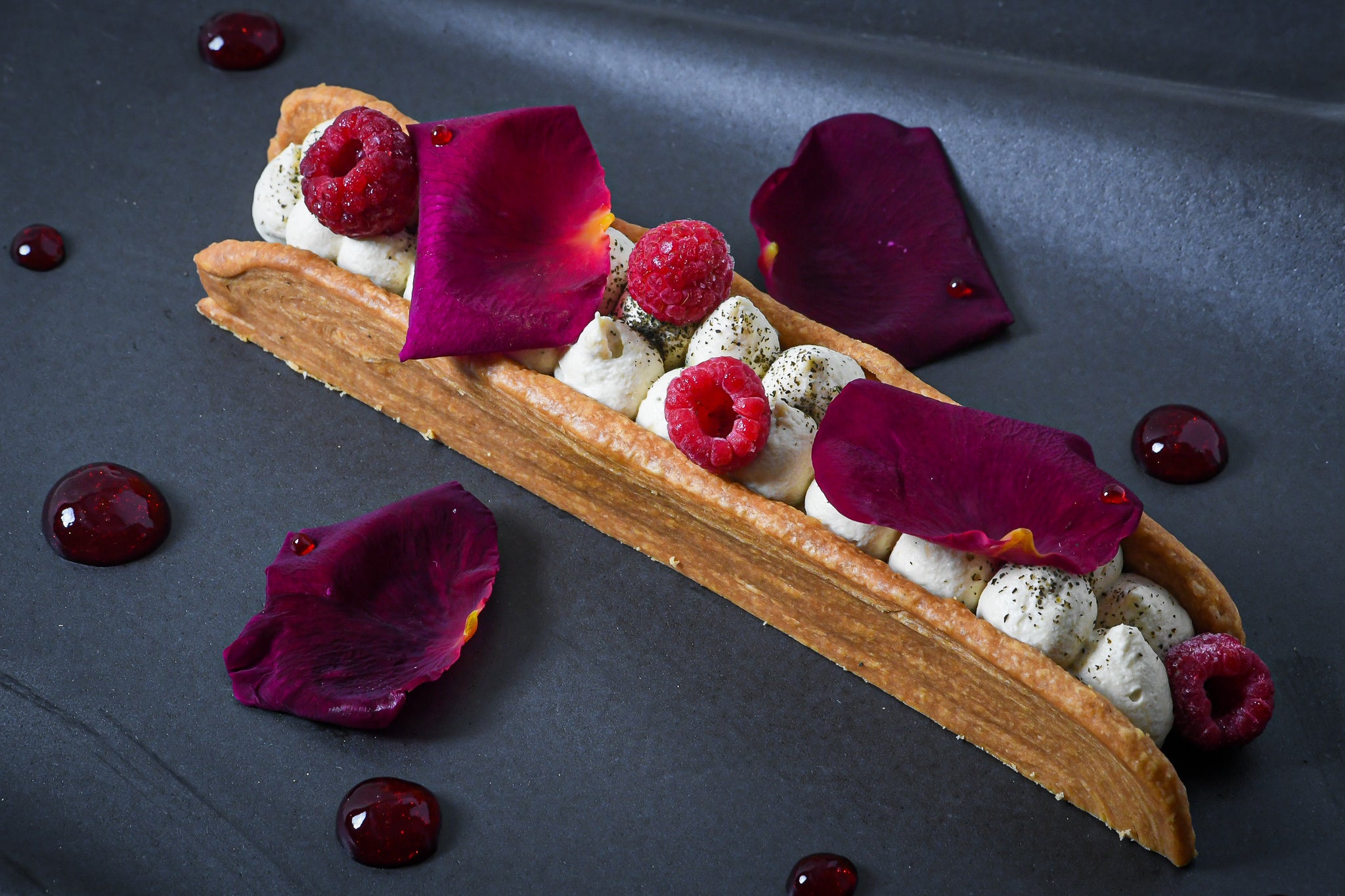 ジャスミンのクリームと、ローズアイスクリームのミルフィーユ。