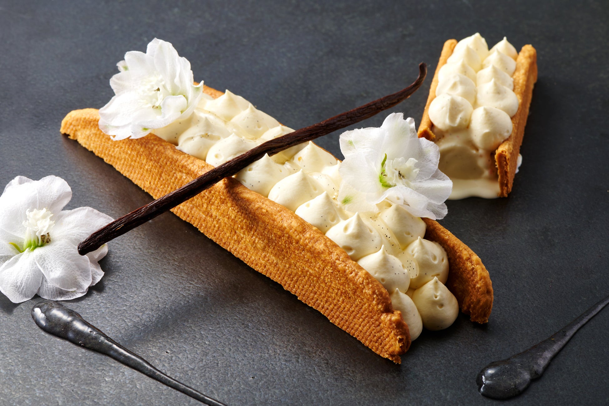 ジャワ産の少しスパイシーな香りのヴァニラを使ったクリームと、ヴァニラアイスのミルフィーユ。