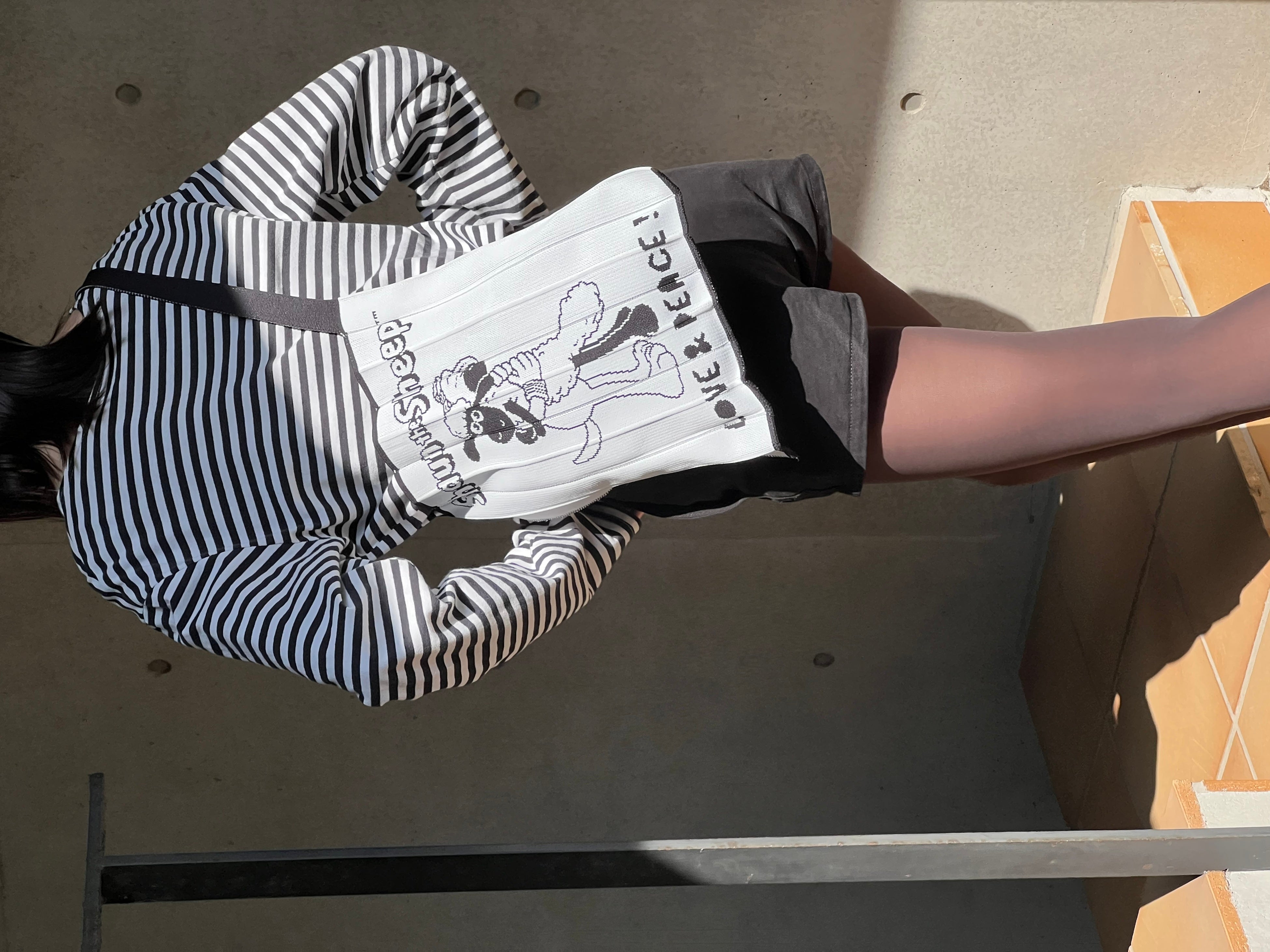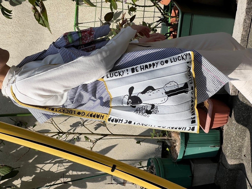 500㎖ペットボトル1.5本分からリサイクルされた糸を使用して製作。