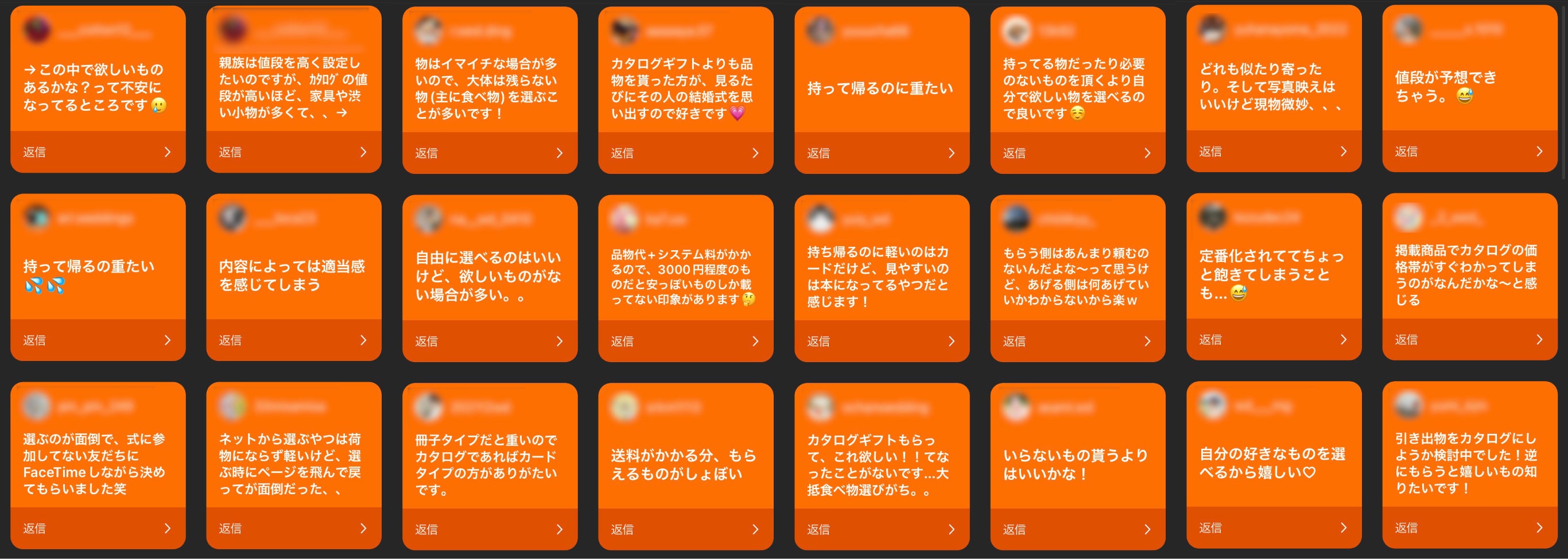 「すでに持っている物をもらうことがないのはいいけど、カタログの中が似ていることが多いのでだんだん…」