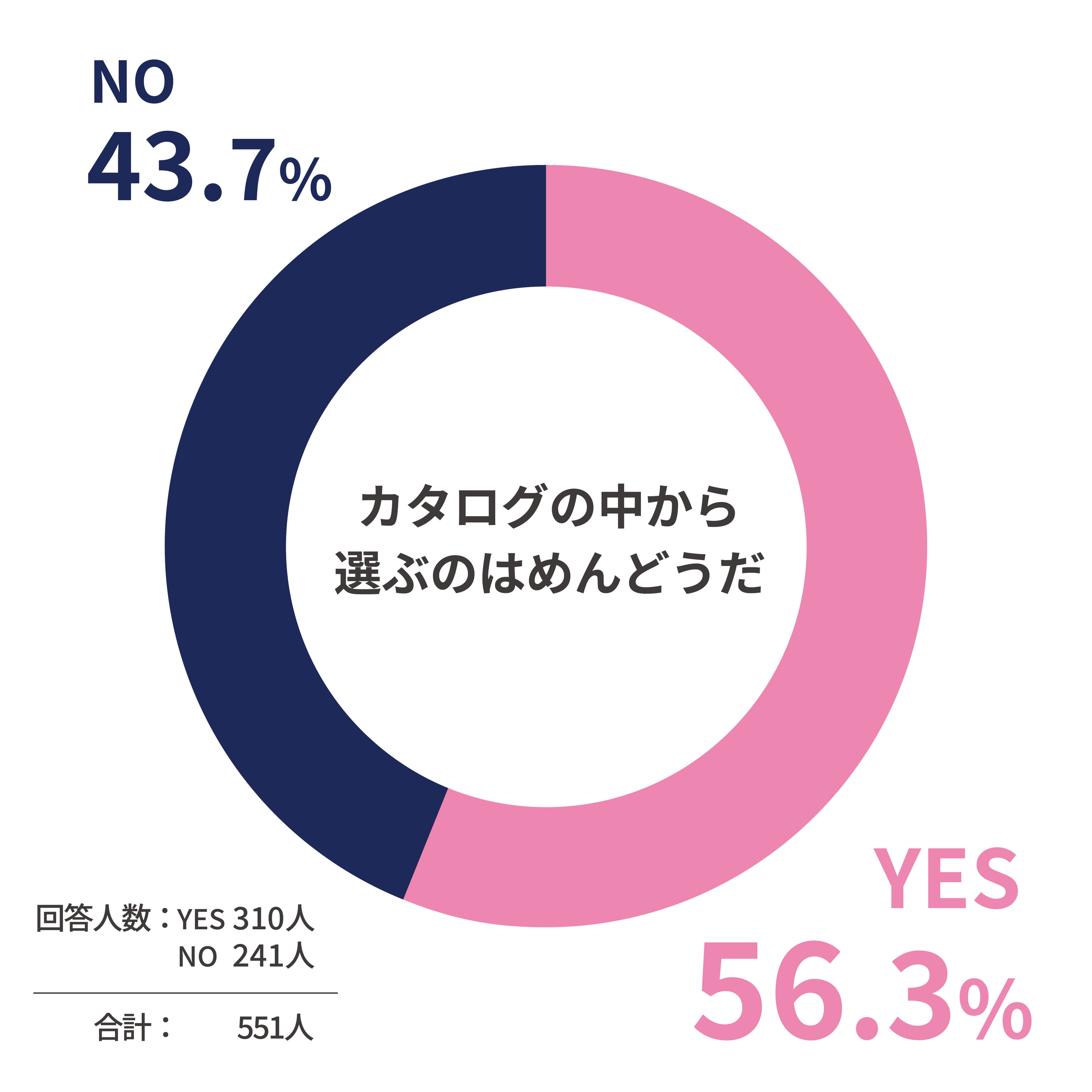 「カタログのなかから選ぶのは面倒だ」と答えた人は56%と過半数以上。