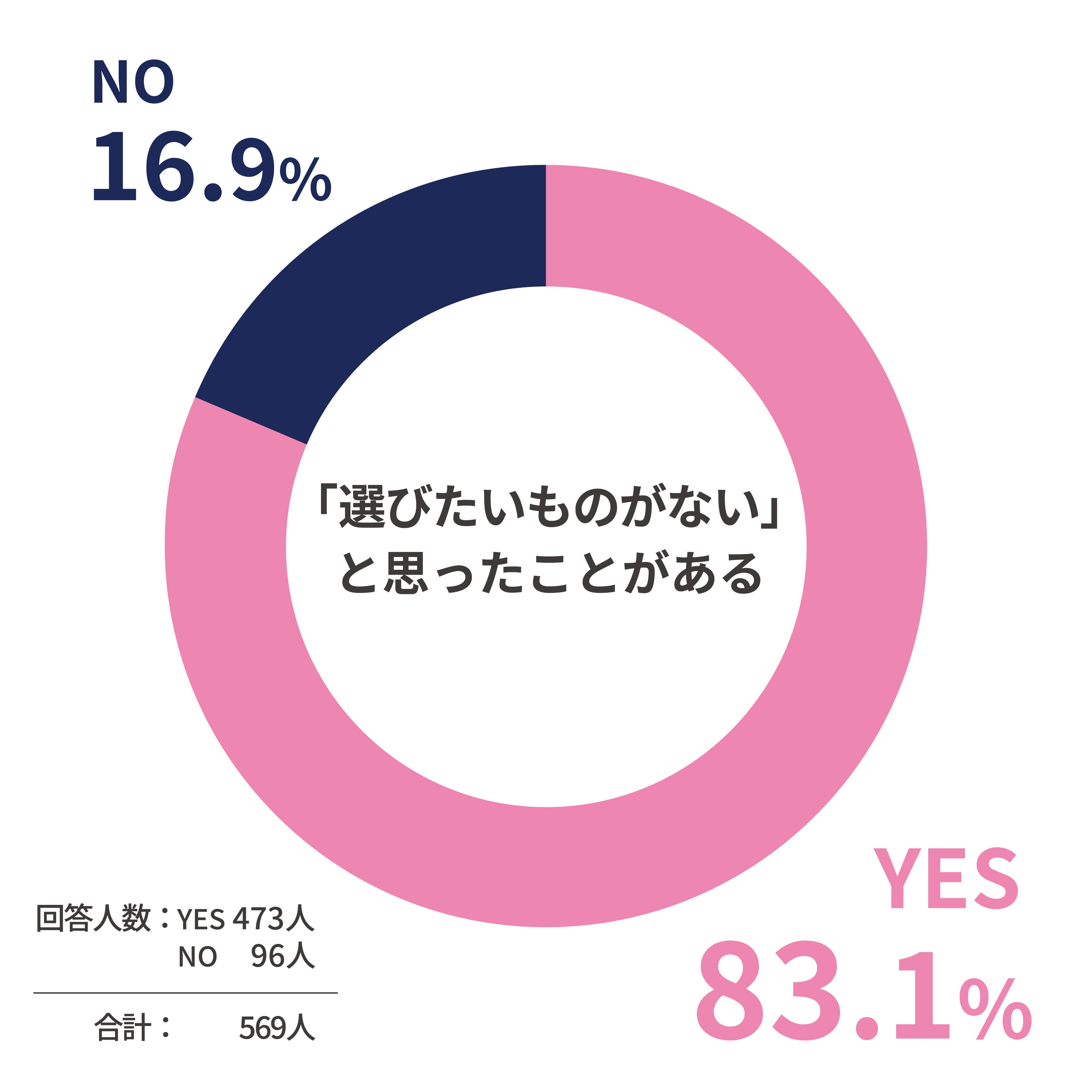 「中身を見て「選びたいものがない」と思ったことがある?」という問いに対しては83%が「YES」と回答。