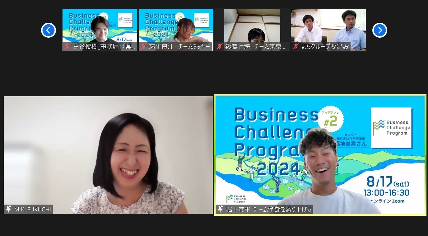 8月に開催したアイデアソン#2は、台風7号の影響を考慮し急遽オンライン開催となりましたが、画面越しに皆さんの熱気が伝わるあっという間の短縮版の3時間半でした。2022年度の県北BCPアイデアソンで最優秀賞である県知事賞を受賞されたチーム八千代商事のリーダーである株式会社八千代商事 取締役 福地美喜さんをゲストにお招きし、キーノート「アイデアソンのススメ」として、美喜さんの経験からチームづくりにおけるポイントを具体的に教えていただきました。アイデア出しの時間では、美喜さんのキーノートを受け、前提知識が違う人同士であることを改めて大切にしながら、活発なアイデア出しを行いました。チームメンバーの強みや会社の強みに焦点を当てながら、各チームたくさんのアイデアが出ていました。