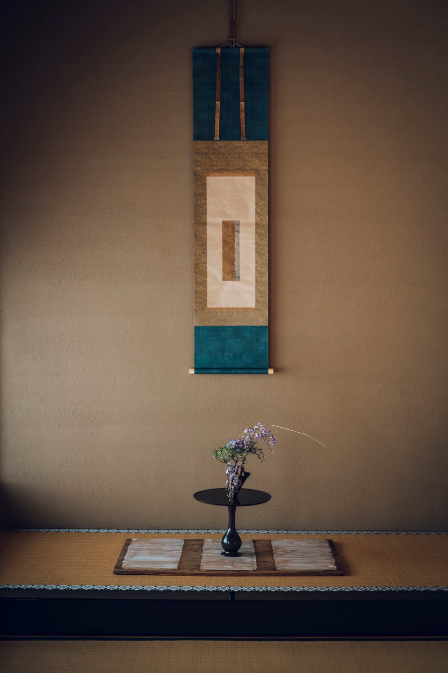 なお香炉は唐津焼の健太郎窯様の新作を使用いたしました。しつらえは国内外に活躍の場を広げている杉謙太郎様です。