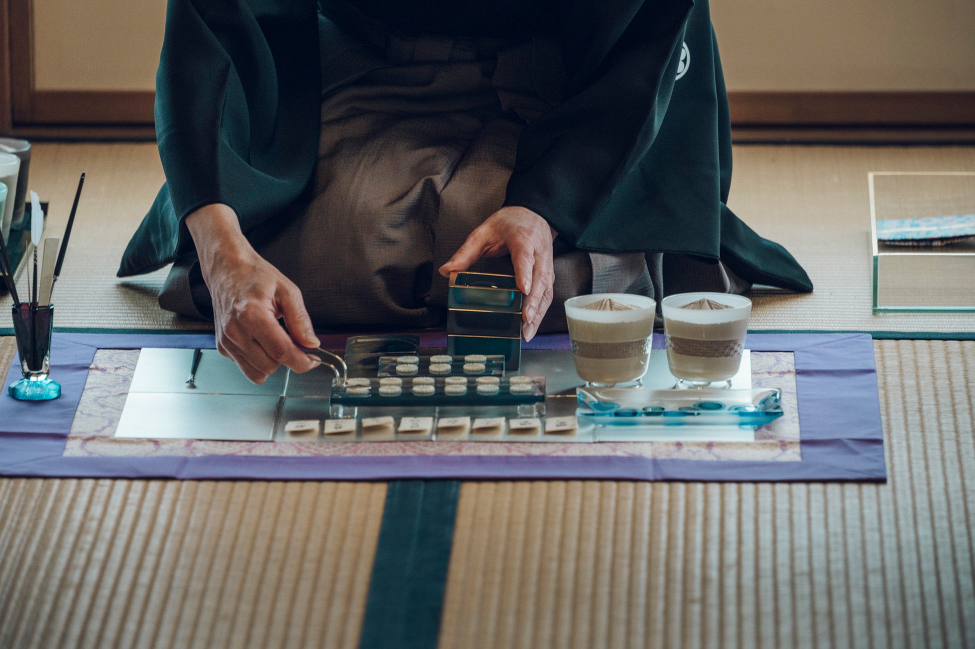 開催場所は、東の茶道の聖地と言われる大本山護国寺の茶寮。国指定重要文化財の月光殿をはじめとした由緒ある茶室が舞台です。しつらえは杉謙太郎様、新作の唐津焼、鍋島焼の聞香炉の発表ほか、ピエール・エルメ・パリ様にご協力いただいた呈茶席もご用意。参加者の皆様に、ラグジュアリーな香りの世界を体験していただきました。
