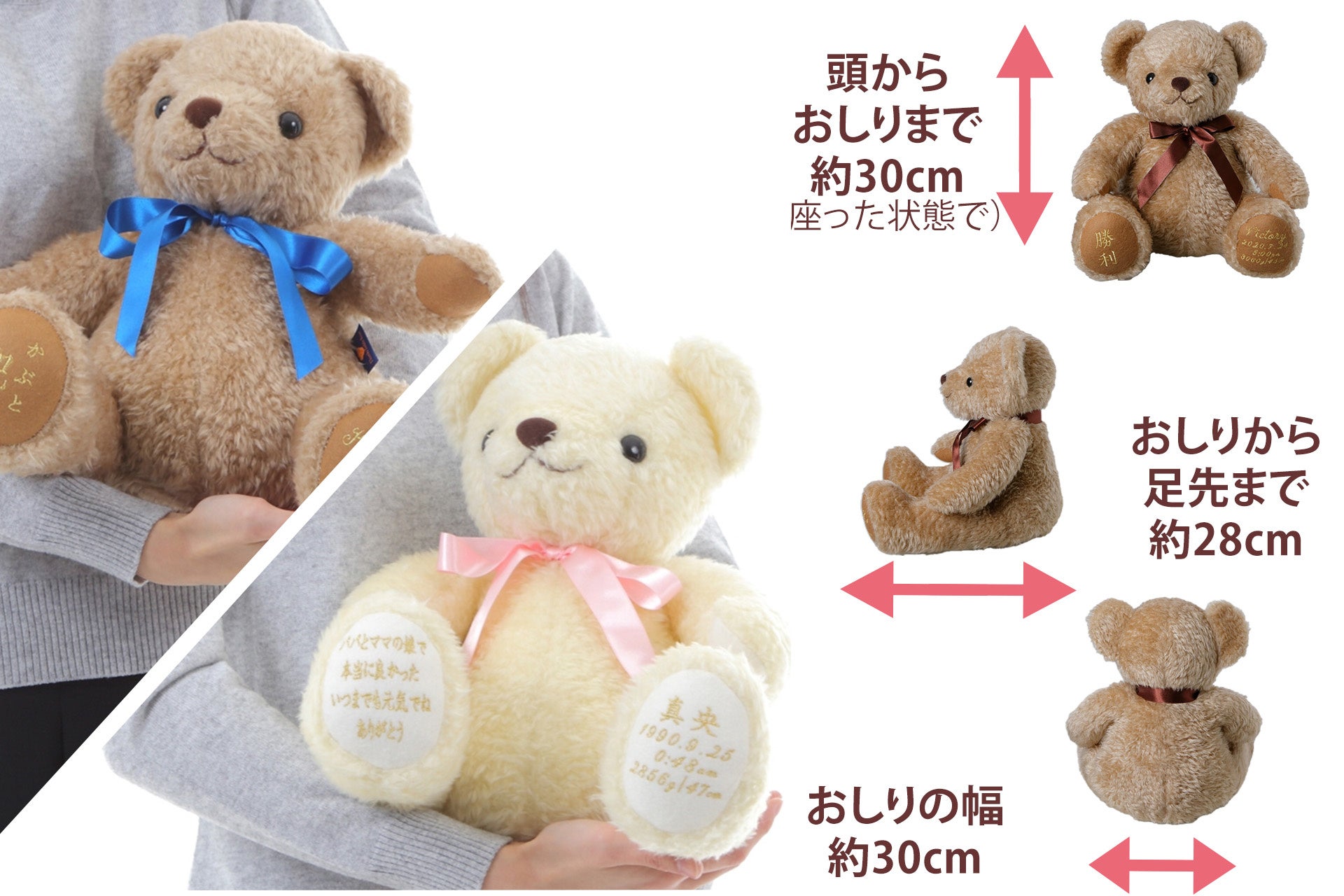 赤ちゃん体重テディベアは、生まれた時の重さで作られたクマのぬいぐるみ。ウェイトベア/ウエイトドールと呼ばれることもあります。