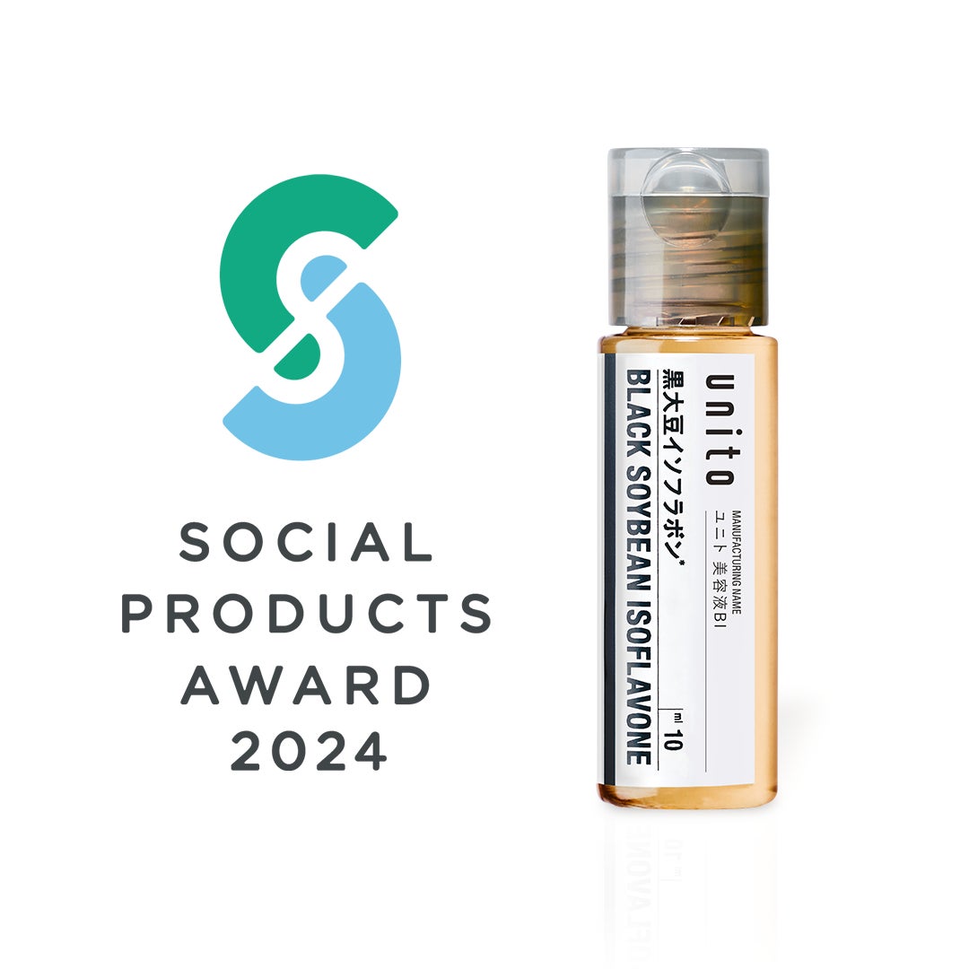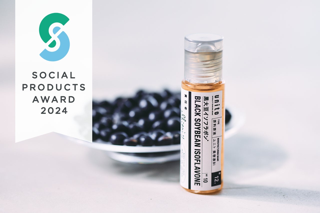 株式会社長寿乃里が展開するプロフェッショナルユース原料原液「unito(ユニト)」(https://uni-to.com/)の【黒大豆イソフラボン】が、一般社団法人ソーシャルプロダクツ普及推進協会が開催する『ソーシャルプロダクツ・アワード 2024』の自由テーマ(生活者が「持続可能な社会」づくりに参加できる商品・サービス)において「ソーシャルプロダクツ賞」を受賞いたしました。