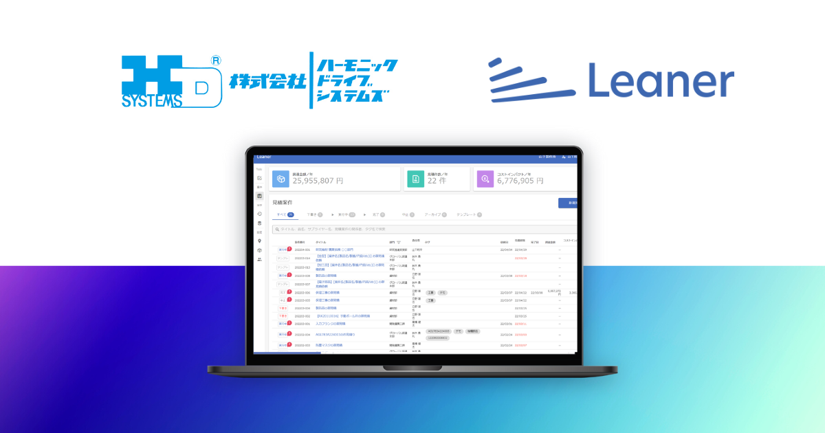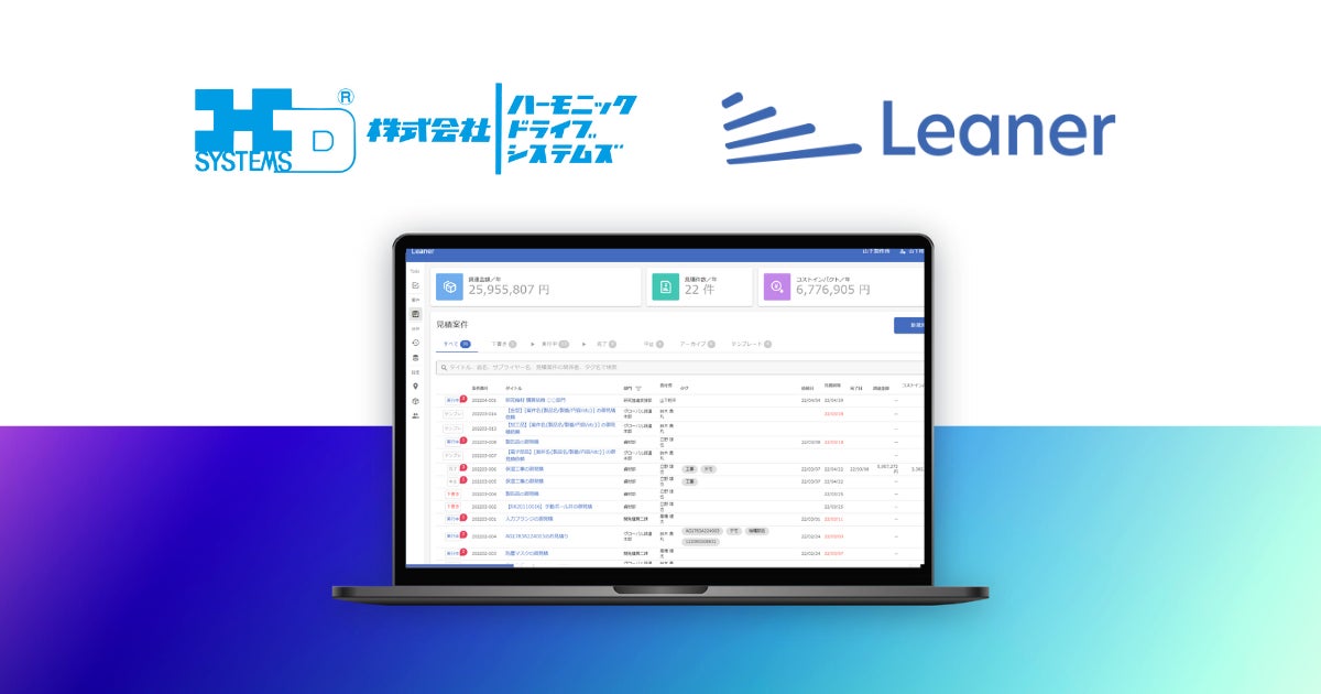 株式会社Leaner Technologies(本社:東京都目黒区、代表取締役:大平裕介)は、高精度精密減速機製造の株式会社ハーモニック・ドライブ・システムズ(本社:東京都品川区、代表取締役:長井啓)が企業の調達管理プラットフォーム「Leaner見積」を導入開始したことをお知らせします。