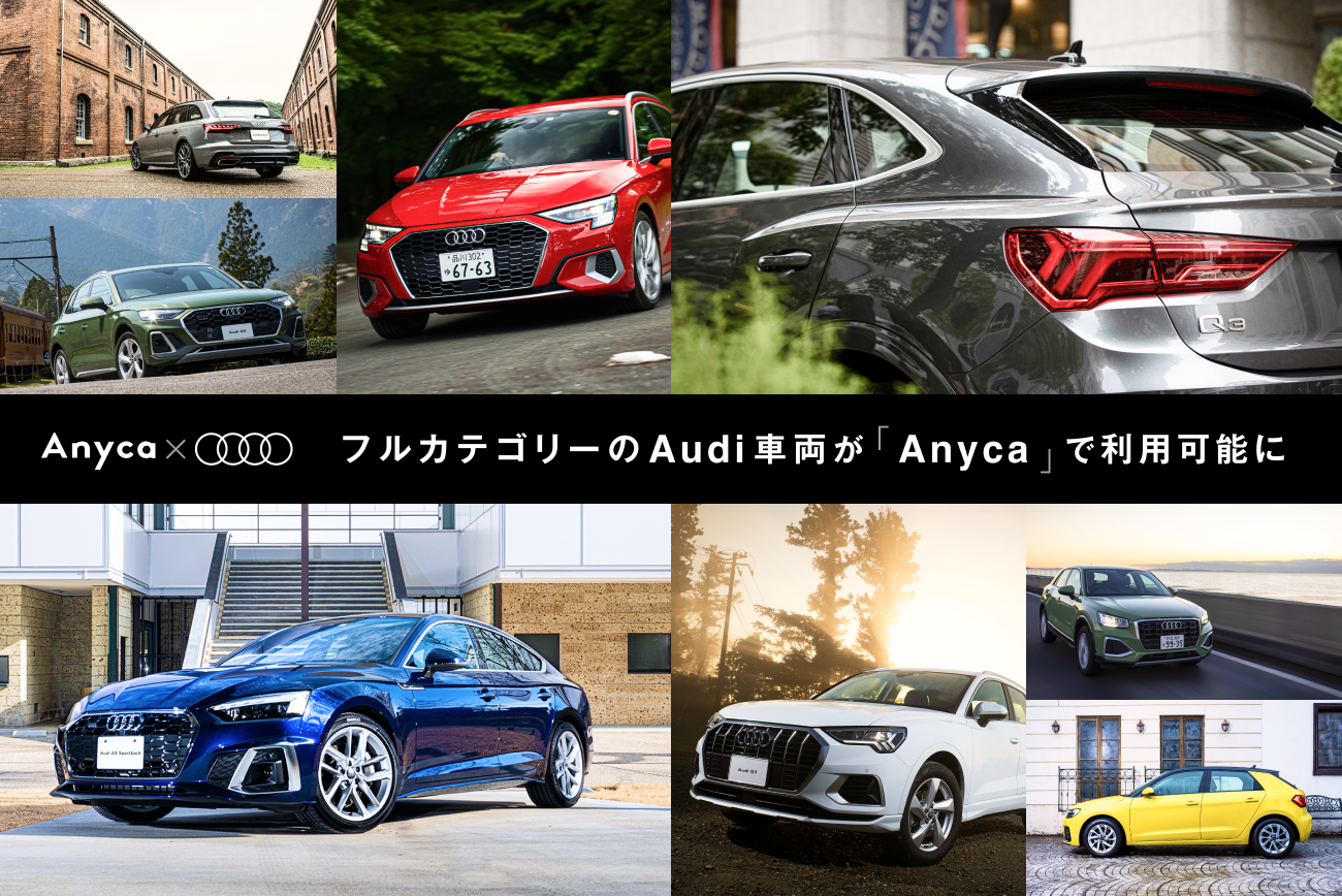 Audi Japan Salesは、法⼈が所有する⾞両のカーシェア(共同使⽤)※1を可能にする「Anyca」の取り組みに初めてのパートナーとして2020年7⽉に参画頂きました。初期は2店舗・4台で展開しておりましたが、その後、好評につき全新⾞販売拠点12店舗にて導⼊し、32台と順調に拡⼤してきました。これらのカーシェア⾞両に加え、今回の提携でさらにレンタカー⾞両が24台登録され、全16店舗で「Audi」のフルカテゴリーのAudi⾞両※について、カーシェアまたはレンタカーで乗ることができます。今後も、Audi⾞両を気軽に体験できるチャネルとして、提携を拡⼤していきます。
