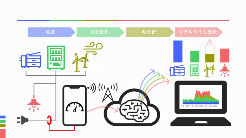 商工業分野向けAI/IoT電流計「EnergyColoring」は、センサーは、1つ1つの設備にセンサーを設置することやデータを回収する手間が省けることに加えて、設置直後からデータを確認することができるため、スピーディーに現状を把握することができます。工場・公共施設などでご利用いただき、電力内訳を見える化したことで省エネにつながった実績もあります。この度、夏季の省エネキャンペーンとしてより多くの企業様にサービスを利用していただけるように特別料金でご提供いたします。