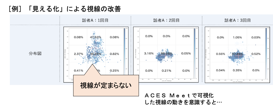 分析の第一段階では、営業時に信頼を獲得するコミュニケーションとして重要な笑顔、頷き、アイコンタクト等の非言語コミュニケーションが、ロールプレイング(実際の商品提案場面を想定した実演研修模擬商談、以下ロープレ)を重ねることでどのような変化が起こるかを検証しました。すでに一部の支社データを用いて社内の提案ロープレを分析しており、笑顔や頷き、アイコンタクトなどの非言語情報をアルゴリズムにより定量化し、時系列変化による評価が可能であることが示されました。