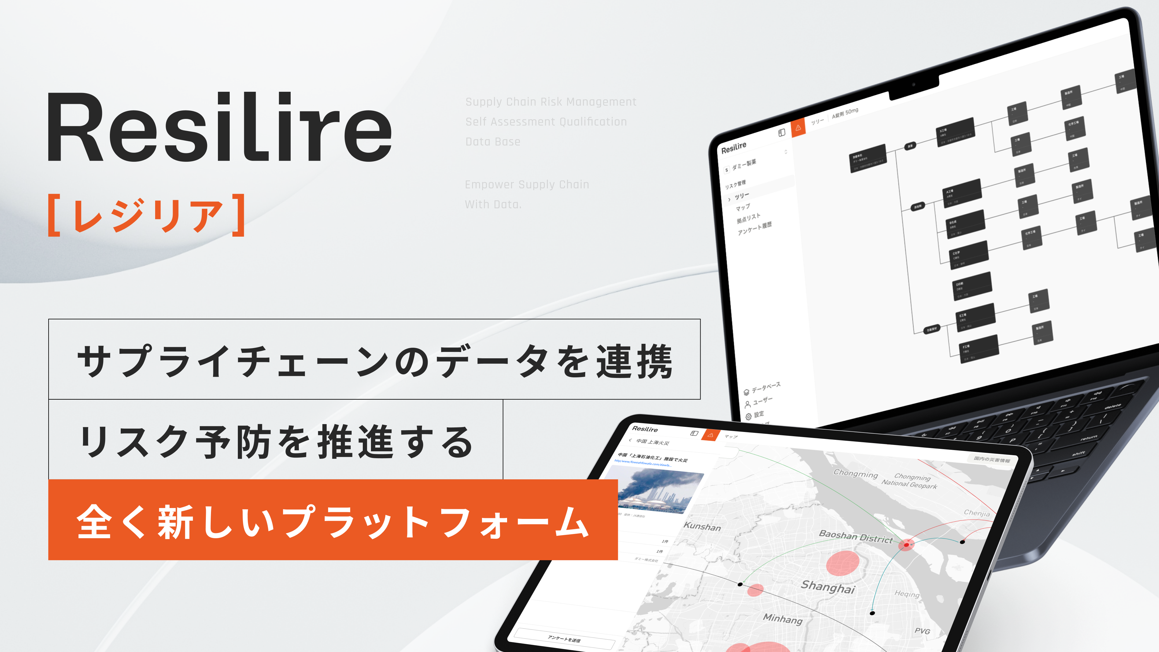 株式会社Resilireはサプライチェーンリスク管理サービス「Resilire(レジリア)」を研究・開発しております。