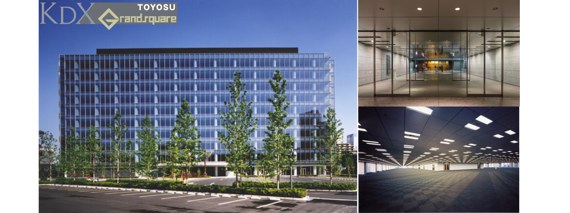 KDX豊洲グランスクエアは2008年に東京・豊洲に竣工したオフィスビルで、都心部では最大級のフロアサイズを備える大型オフィスビルです。1階には入居企業社員が利用出来る食堂やカフェテリア、貸会議室のほか、コンビニエンスストアなども併設されています。