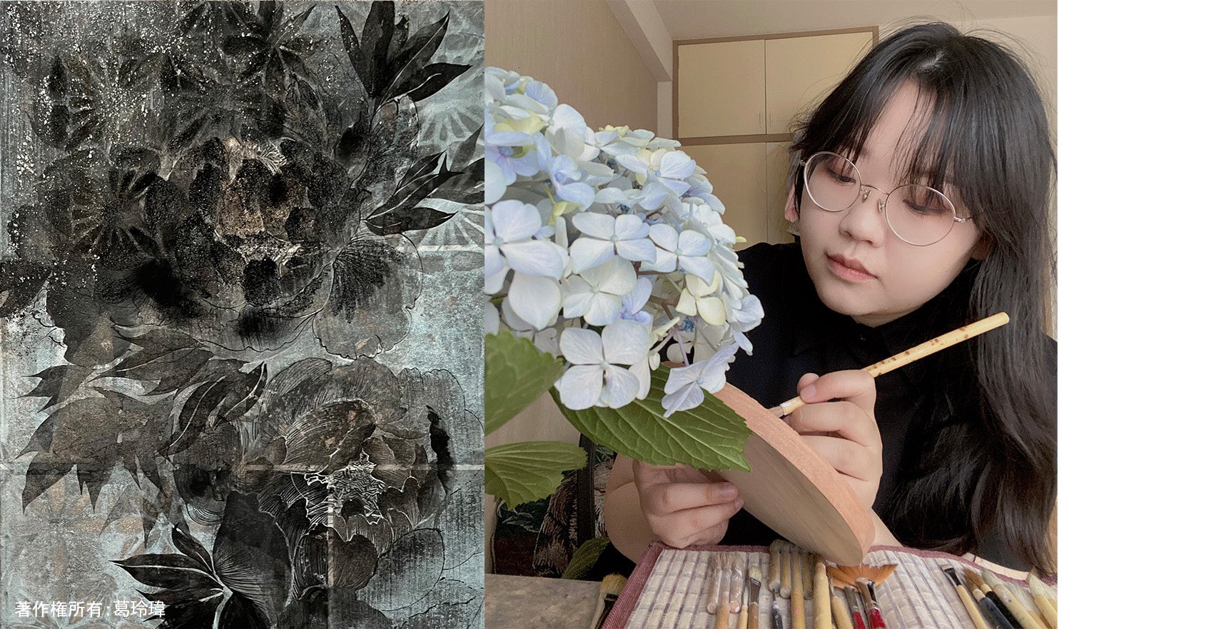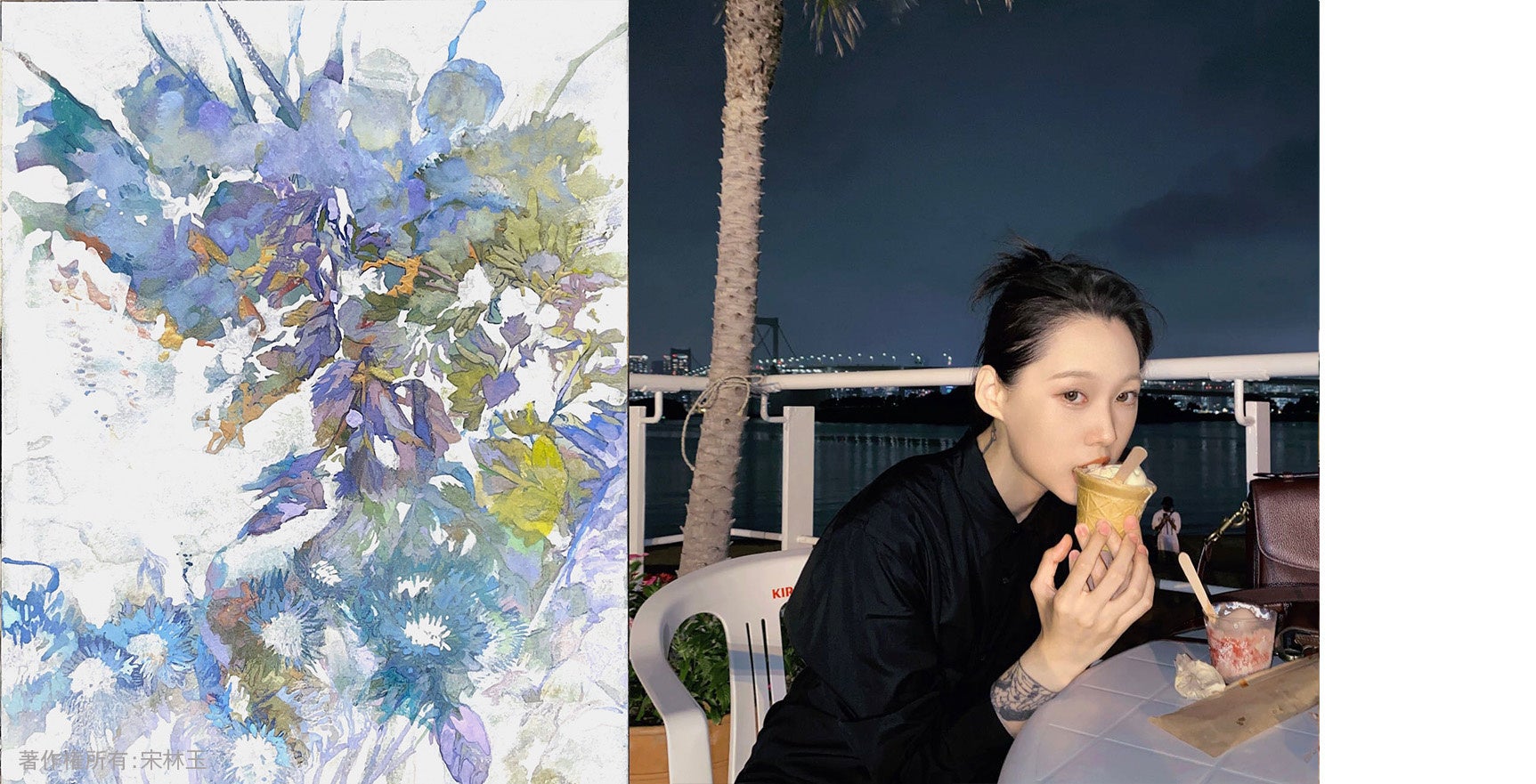 宋林玉(ソウ リンギョク)中央美術学院 美術学学士卒業、日本画在学中 作品紹介: 自然を愛する気持ちから生まれた作品。刹那的な時間を超えた植物の流れの美しさを描きたかったのです。