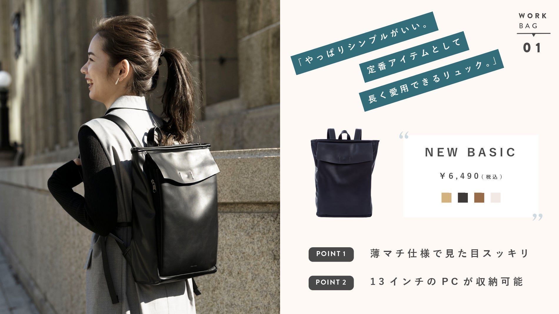 リモートワークの普及、ビジネスファッションのカジュアル化、スマートフォンの普及、自転車通勤などにより、使いやすさの利便性が高い「リュック」を求める方が増えています。リュックの一番のメリットは両手が自由に使えること。またパソコンやタブレットなど重い荷物を持ち運ぶ機会が増えたことにより、両肩でバランスよく負荷を分散することができ、疲れにくいことも人気の理由です。