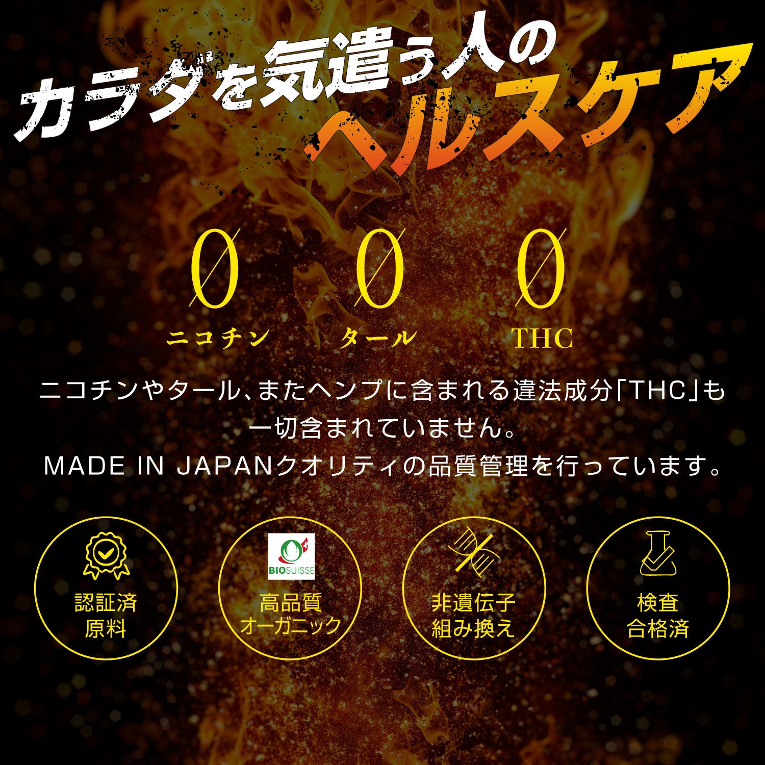 CBDにはニ相性があることが知られており、その摂取量によって、気分のスイッチを「ON」「OFF」の切り替えサポートとして楽しんでいただくことが出来ます。そのため本製品は、CBDの濃度を7%という低濃度に設定し、ONしていただきやすいようにしております。