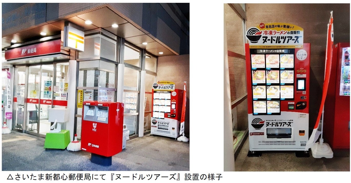 創業昭和33年業務用製麺所の丸山製麺、全国の有名店のラーメンが買える冷凍自販機『ヌードルツアーズ』をさいたま新都心郵便局に設置