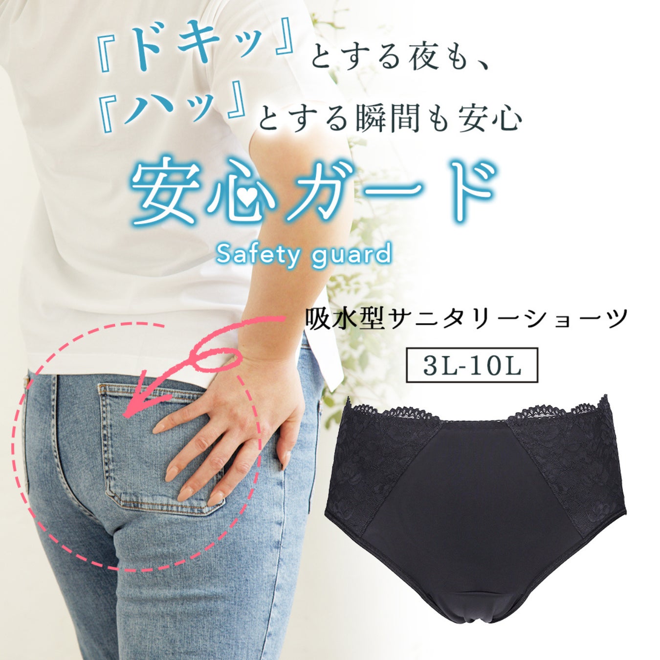 日本のぽっちゃりさん専門ブランドならではノウハウを活かした“ぽっちゃりさん専用の「吸水型サニタリーショーツ」販売中。3L~10Lの幅広いサイズ展開。