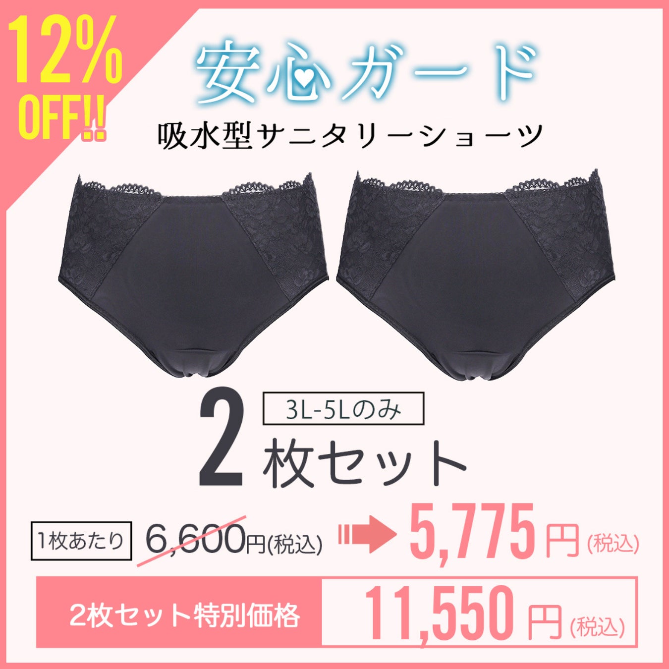 【3L〜10L】5/16発売、吸水型サニタリーショーツ2枚セットが特別価格に【1,650円お得】
