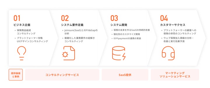 柔軟なSaaS型システムの提供にとどまらず、ビジネス・要件定義のコンサルティングや、保険商品の販売支援の提供も可能であることが強みです。
