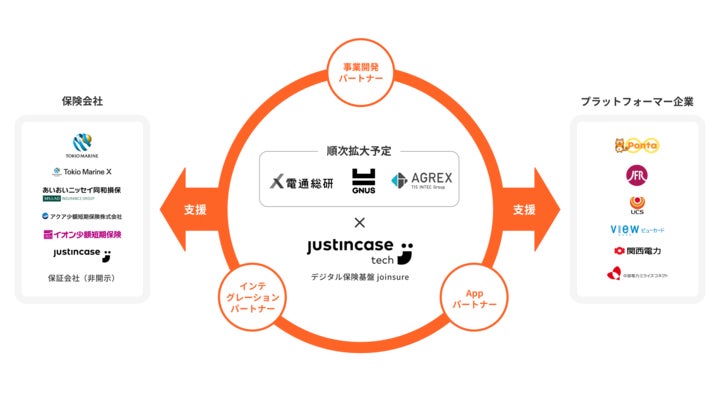保険DXを推進する株式会社justInCaseTechnologies(本社:東京都中央区、代表取締役:畑 加寿也 以下「当社」)は、SaaS型保険システム「joinsure」の提供価値向上に向けて、パートナー体制を導入することをお知らせいたします。まずは、電通グループの株式会社電通総研と株式会社GNUSの2社、TISインテックグループの株式会社アグレックスを含めたソリューションプロバイダー3社と、インテグレーションや事業開発における協業を行います。
