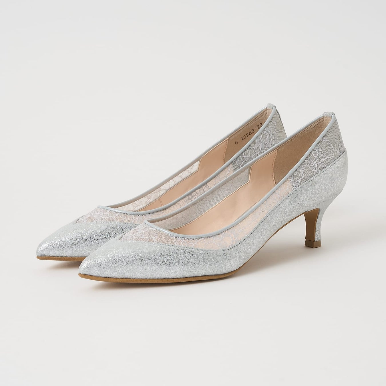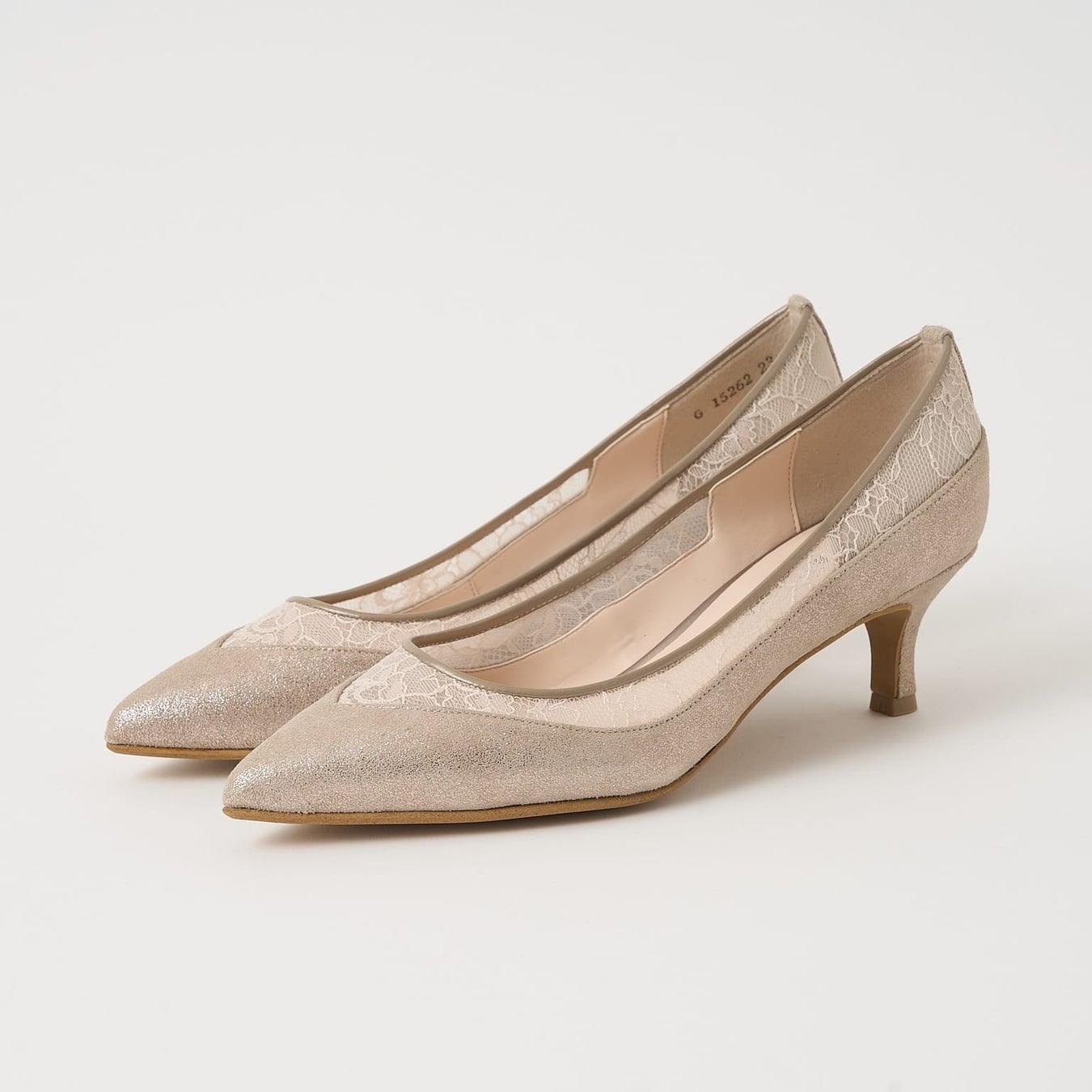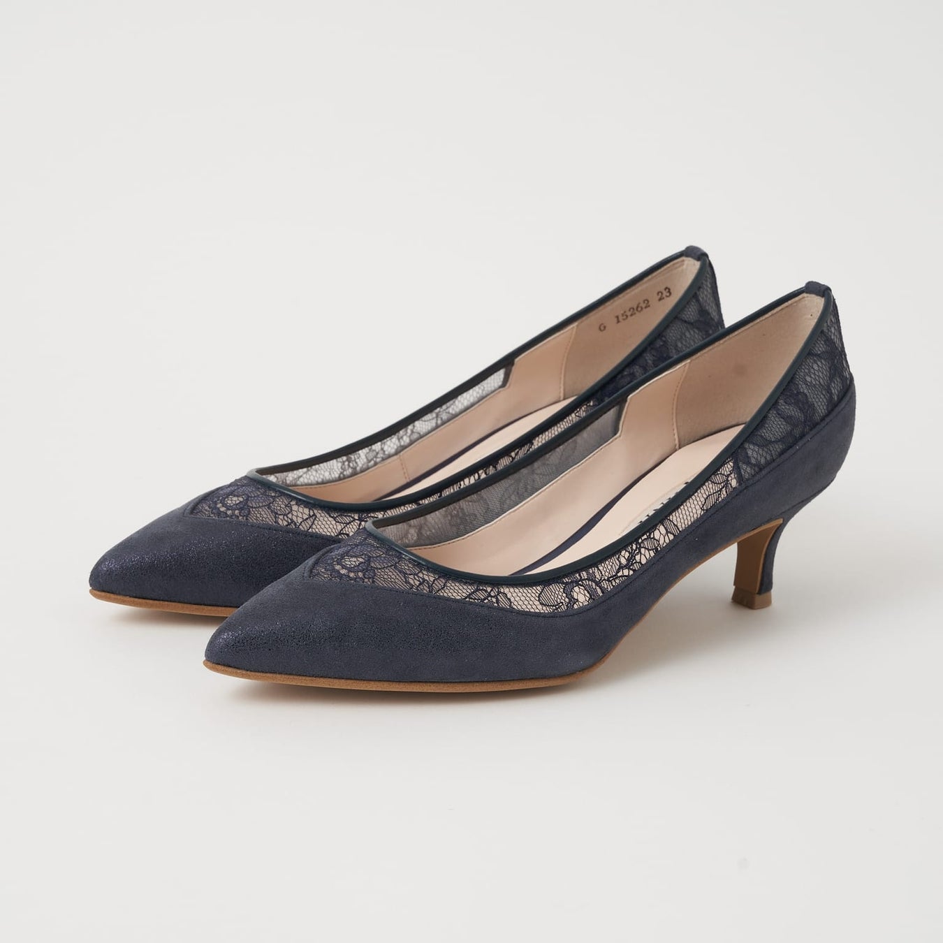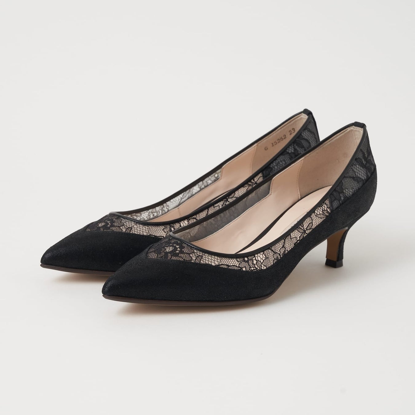 チュールレースのシアー感が上品な抜け感を演出してくれるミドルヒールパンプス。甲部分をVカットですっきりさせ、履き口周りだけにシアー素材を使用しているのでヌーディーになりすぎずシーズン問わず履いて頂けます。