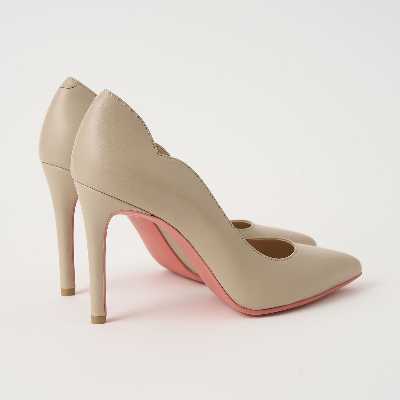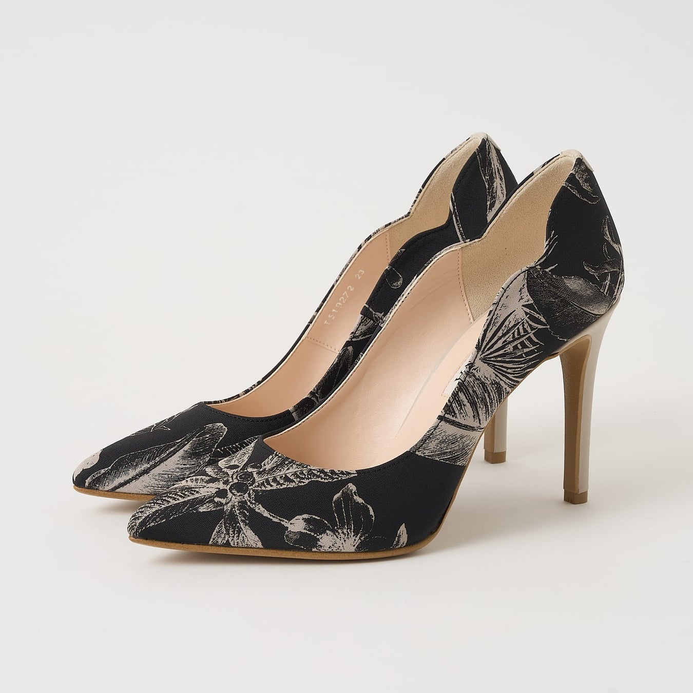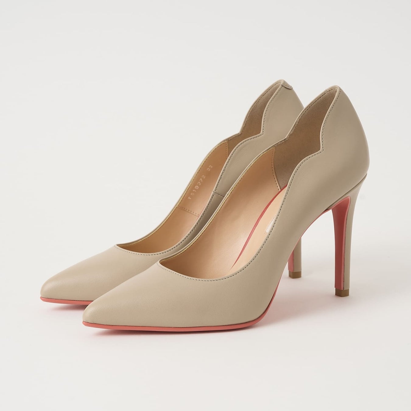 踵のフラワーカットがポイントのレディなパンプス。シンプルなシルエットながらもソールに効かせたカラーが歩く度にチラリと覗き、履くだけで気分の上がる一足です。