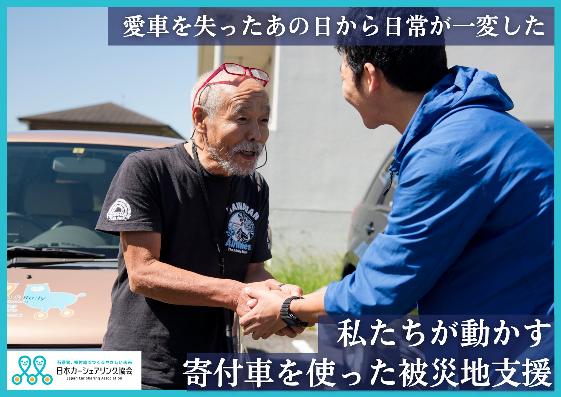 2011年4月、東日本大震災後の宮城県石巻市で設立された非営利団体。自動車の寄付を募り、仮設住宅の住民で車を共同利用するカーシェアリングを開始。今までに延べ1,300台超の車の寄付が集まっており、その車を活用した被災地での無償貸出支援の他、地域の車の共同利用を通じた地域づくり事業であるコミュニティ・カーシェアリングの普及促進や、生活困窮者やNPOへの車の貸出支援などを行っている。これまで23の災害に対応し、延べ6,000件の貸出を実施。現在能登半島地震の被災地で400台超の車を活用した災害対応を10月15日まで行っている。