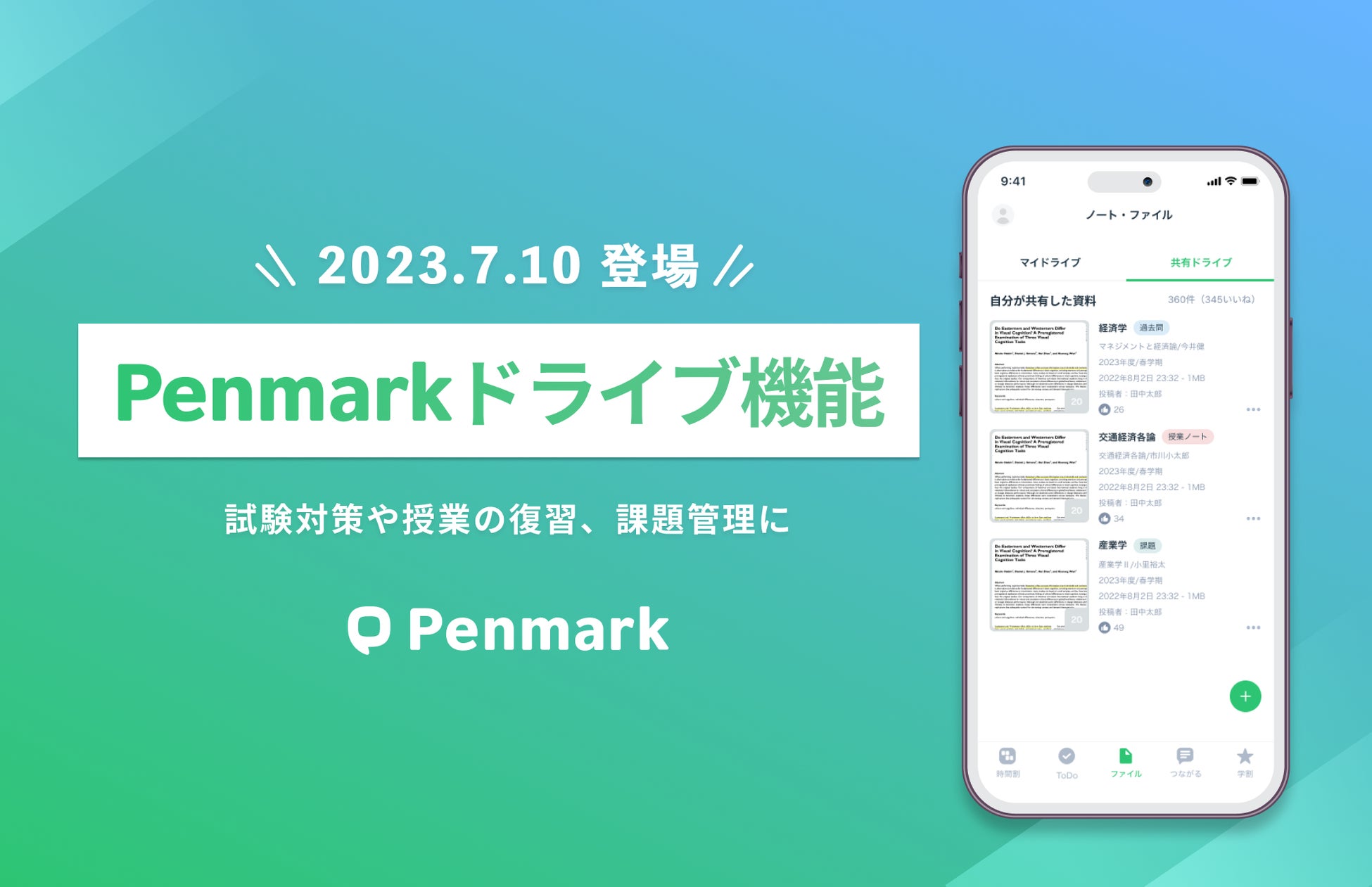 Penmark ドライブが「学びの共有」を通し多くの学生にとって学習の効率化や新たな発見の場になるよう今後もサービスを拡充して参ります。