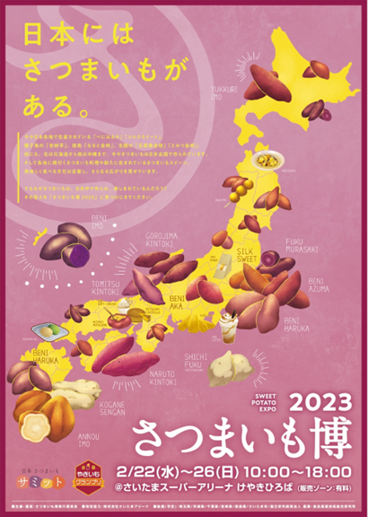 さつまいも博実行委員会(代表:若林勇介、東京都豊島区目白4-1-20)では、来たる2023年2月22日(水)~26日(日)にさいたまスーパーアリーナ けやきひろばにて開催する「さつまいも博2023」において、開催のテーマを”産地”とすることに決定しましたので、お知らせいたします。