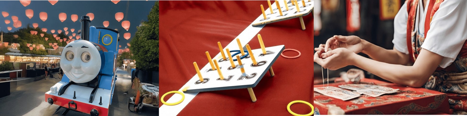 また、夜市名物「輪投げ」や子供に大人気!「きかんしゃトーマス」などが登場!