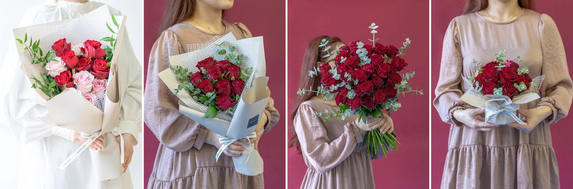 AND PLANTSのフローリストが提案する、バラとグリーンのみで合わせたギフト。バラの花束がロマンチックな瞬間を演出します。ロマンチックに愛を伝え、記憶に残るバレンタインデーを送りたい方におすすめです。