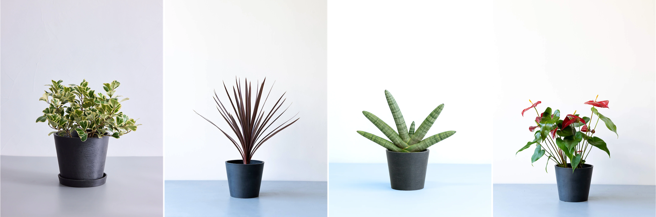 ハート型の葉を持つ「フィカス・スウィートハート」はその名や見た目からもバレンタインにぴったりです(写真一番左)。また、「アンスリウム」には「恋にもだえる心」という花言葉があり、大切な人へ贈るバレンタインギフトに最適です(写真一番右)。