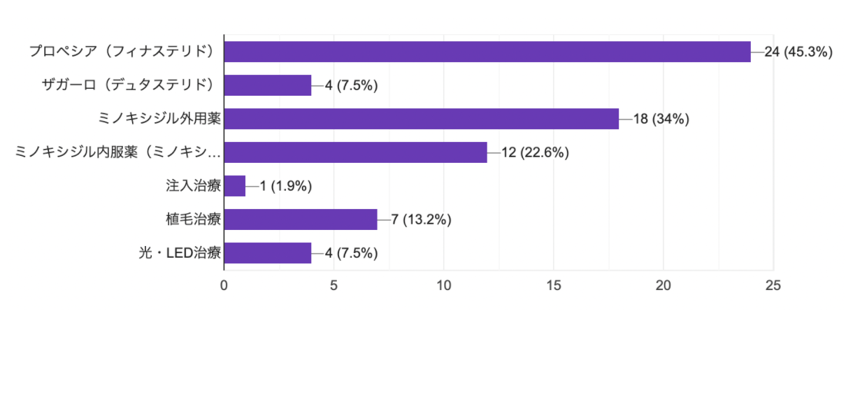 調査対象:20代以上で薄毛治療経験のある男性53名