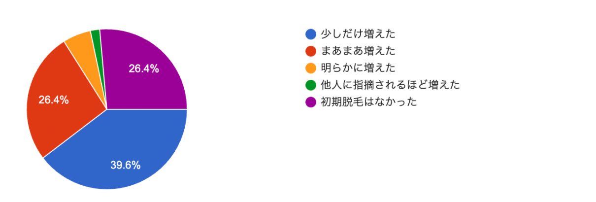 - 初期脱毛でどの程度抜け毛が増えましたか?
