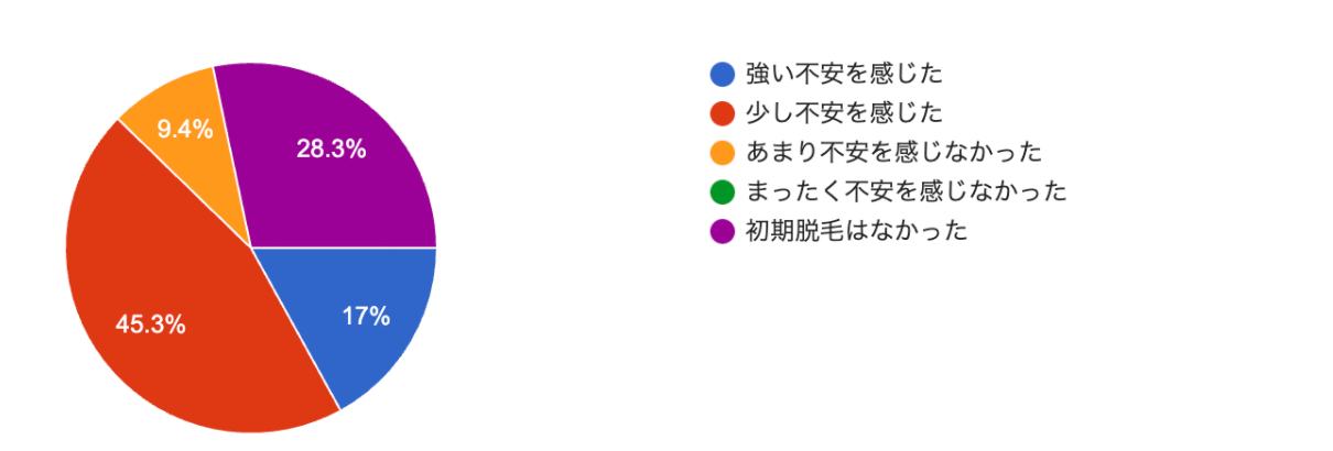 初期脱毛の発現で不安を感じないと回答した方は0名でした。