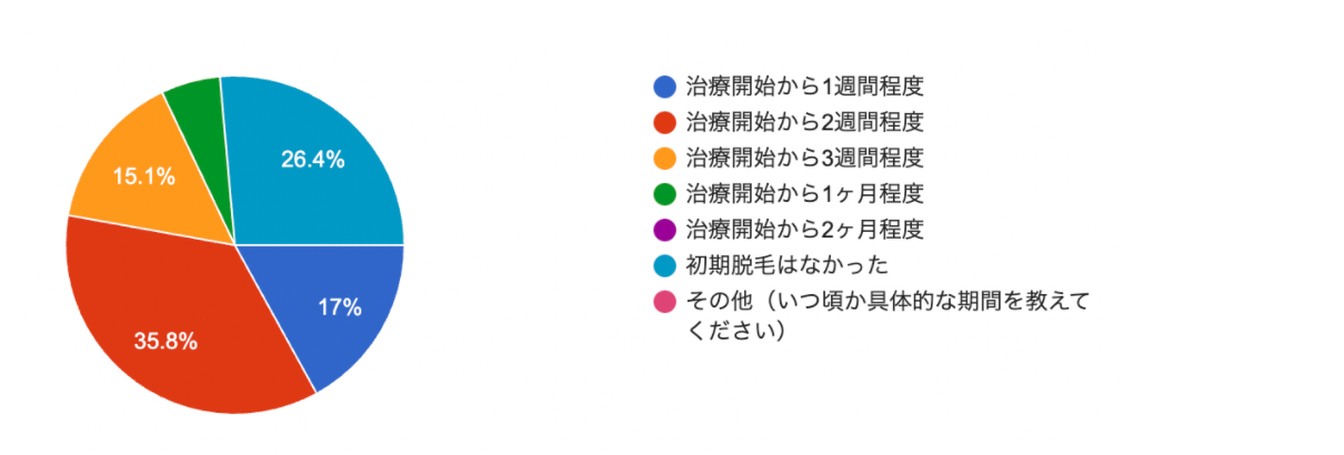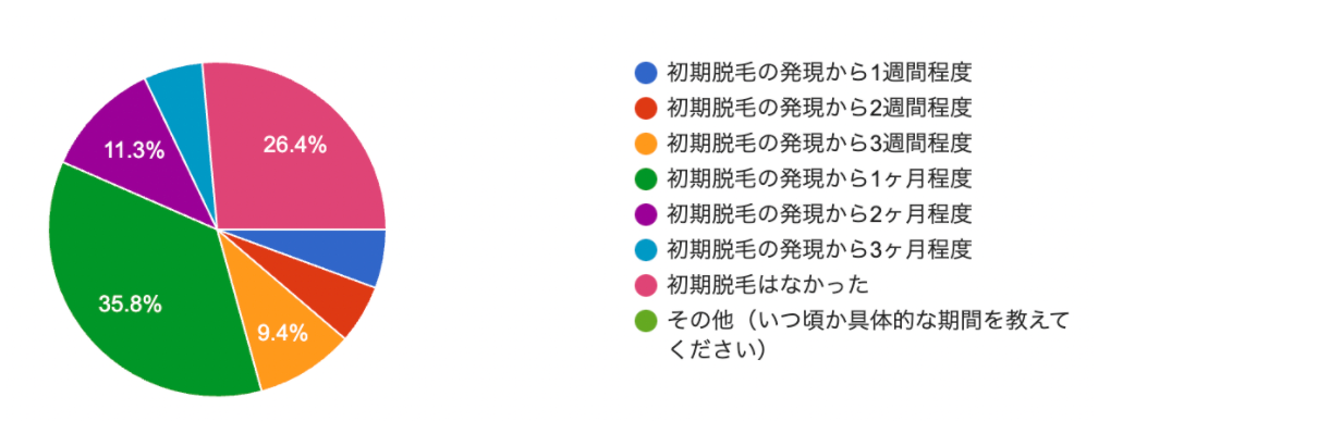 初期脱毛の発現から1ヶ月程度:35.8%(19名)