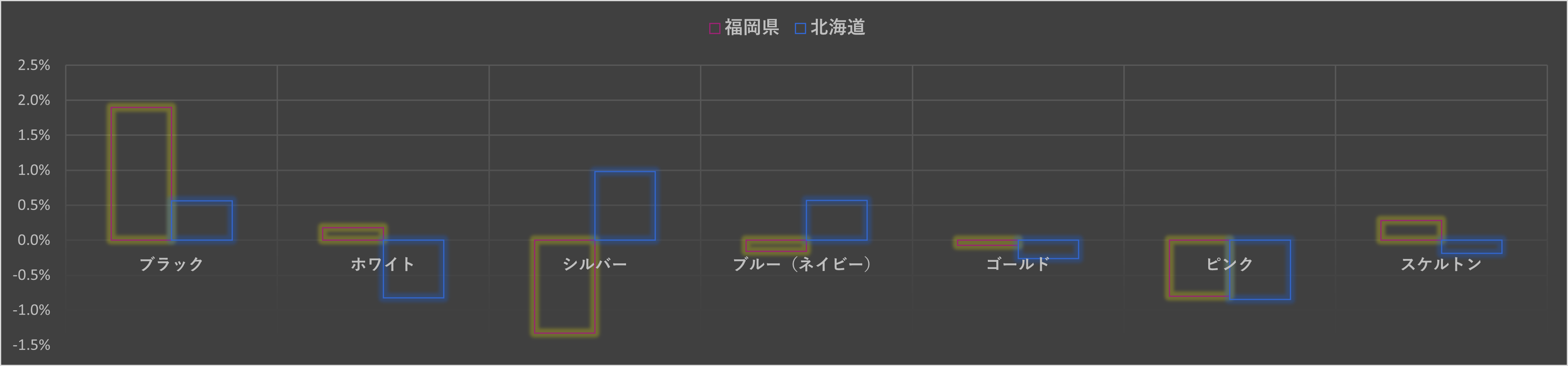 福岡県は、ブラックだけが他県より大きく上回っています。福岡県の人々の力強さが何となく表れているようにも思えます。