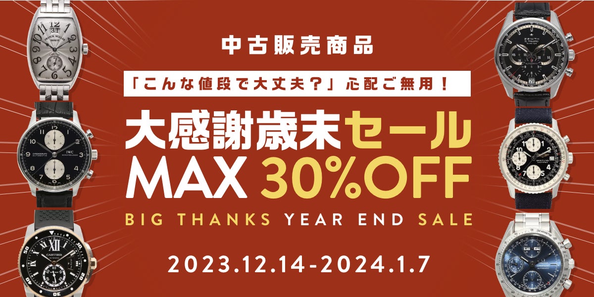 中古ブランド時計の販売価格が最大30%OFFになる歳末セールも本日から開催!